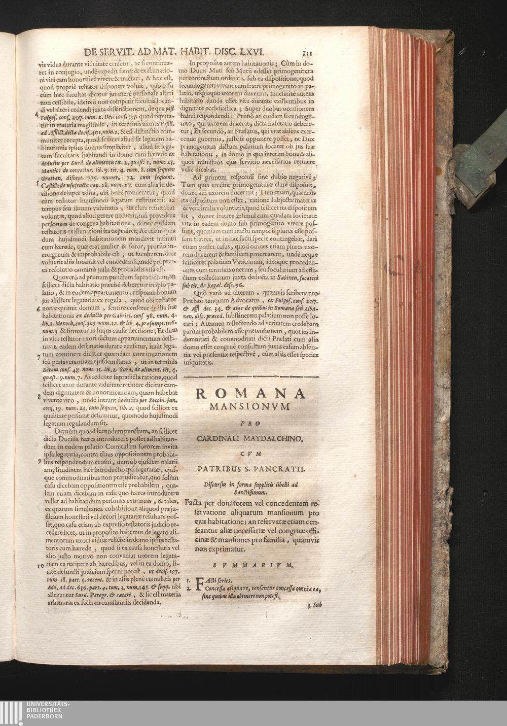 Disc. LXVII. Romana Mansionum. Facta per donatorem vel concedentem reservatione aliquarum[...]