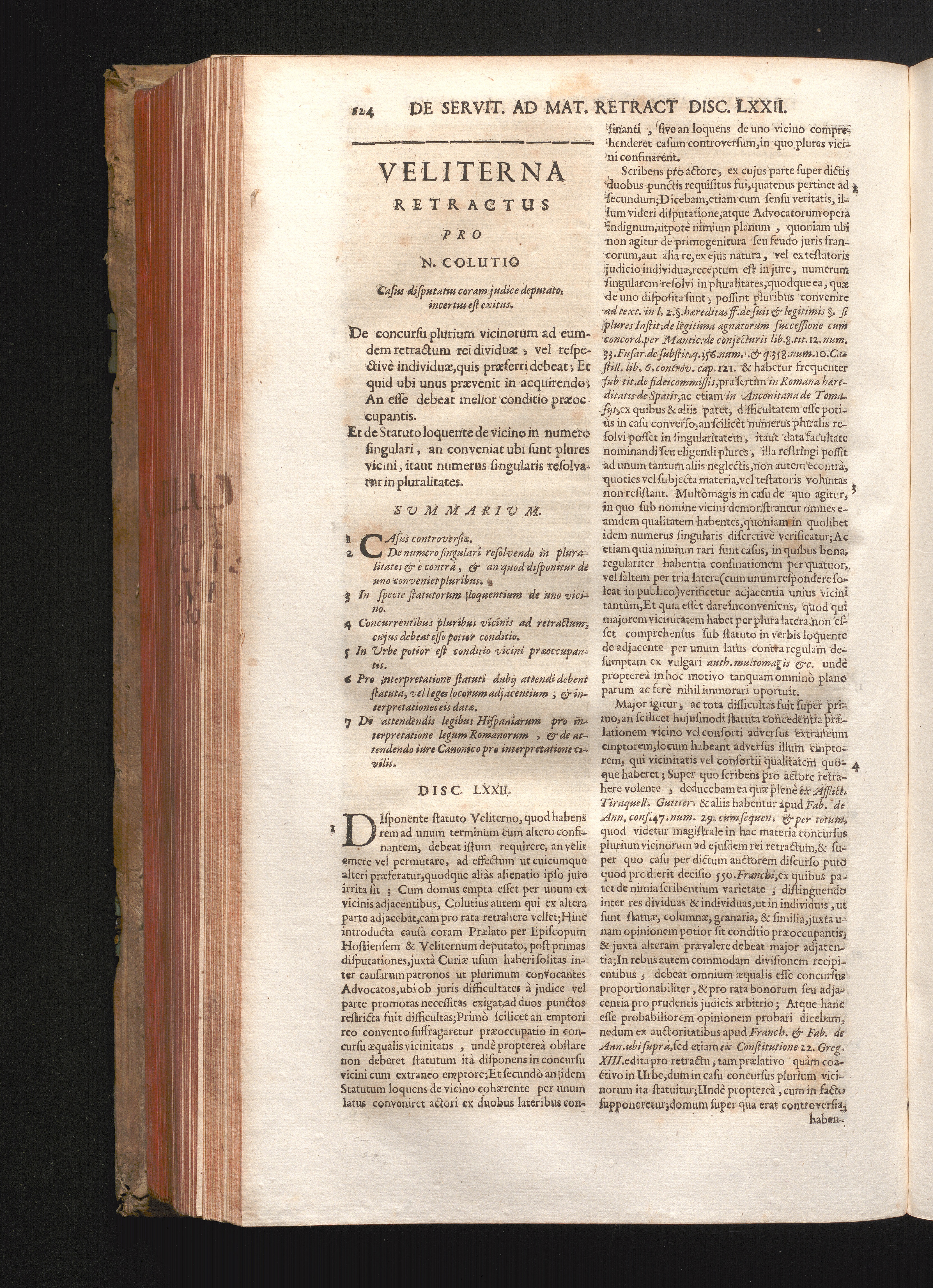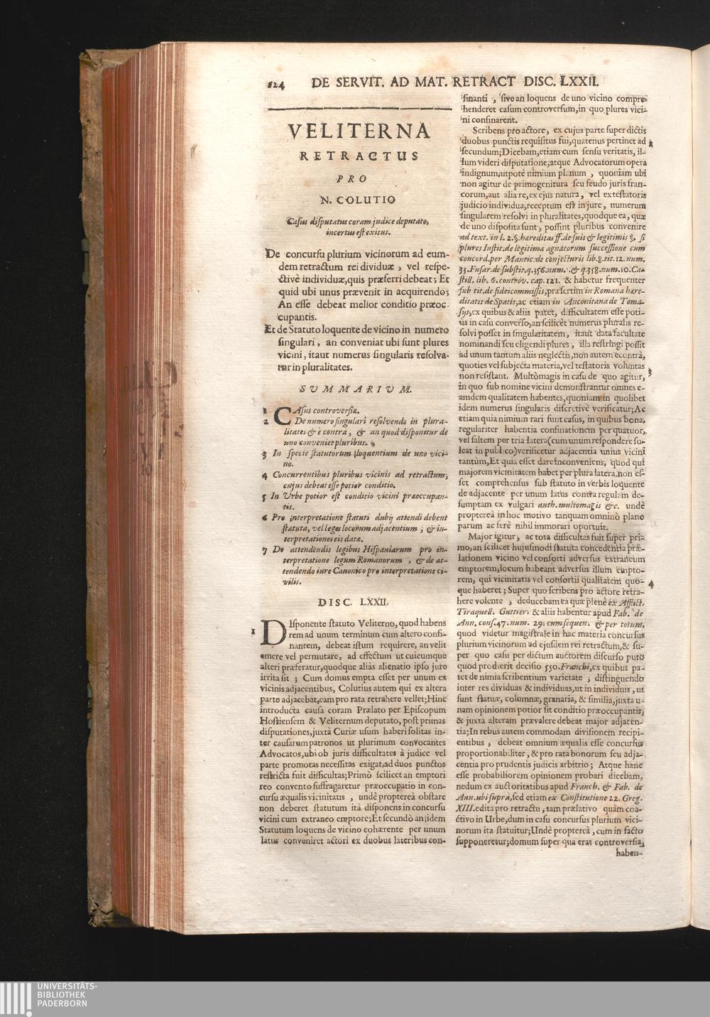 Disc. LXXII. Veliterna Retractus. De concursu plurium vicinorum ad eumdem retractum[...]