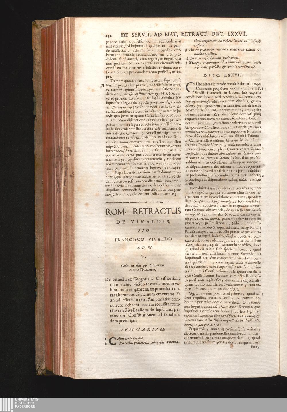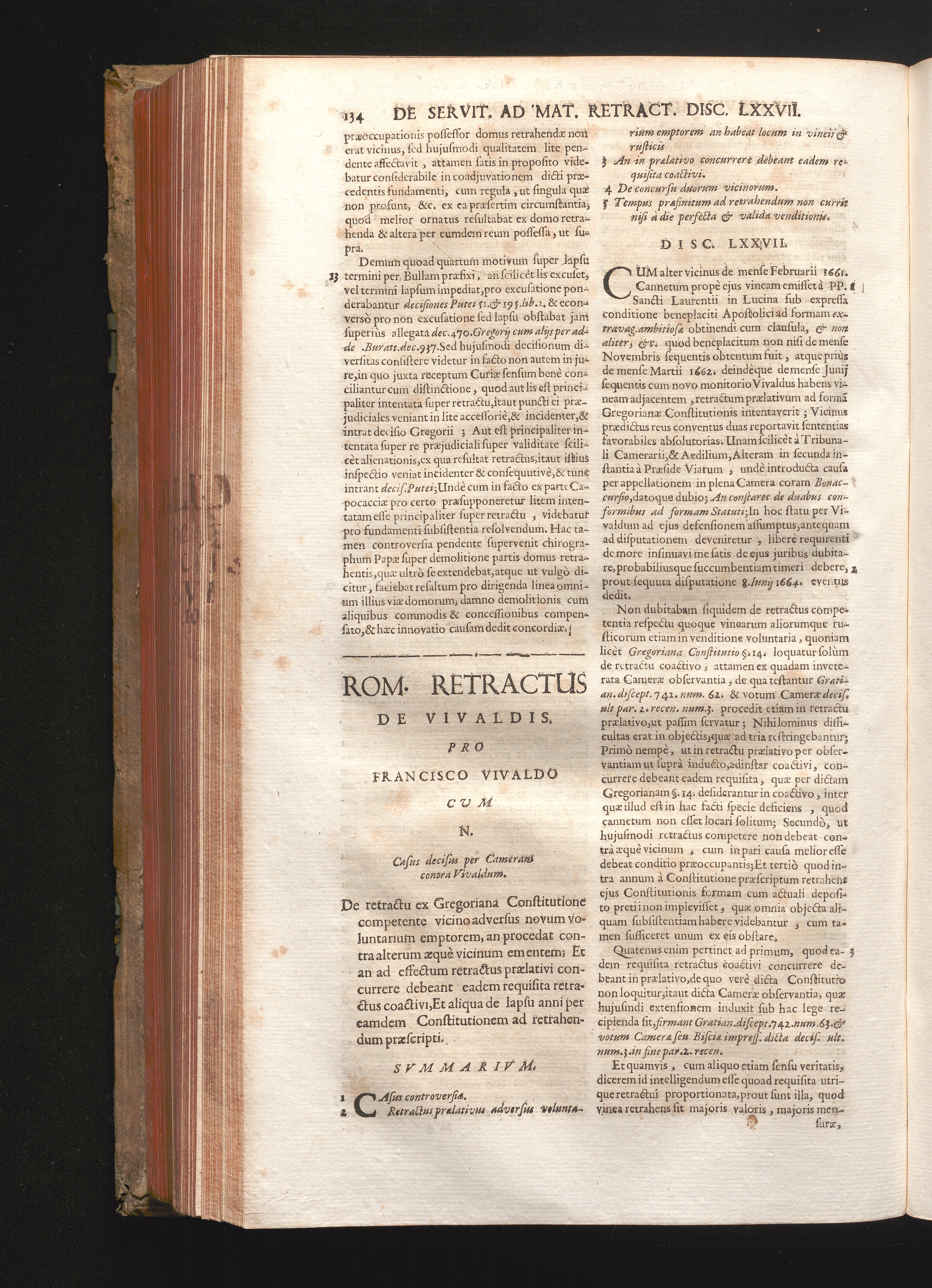 Disc. LXXVII. Romana retractus de Vivaldis. De retractu ex Gregoriana Constitutione[...]
