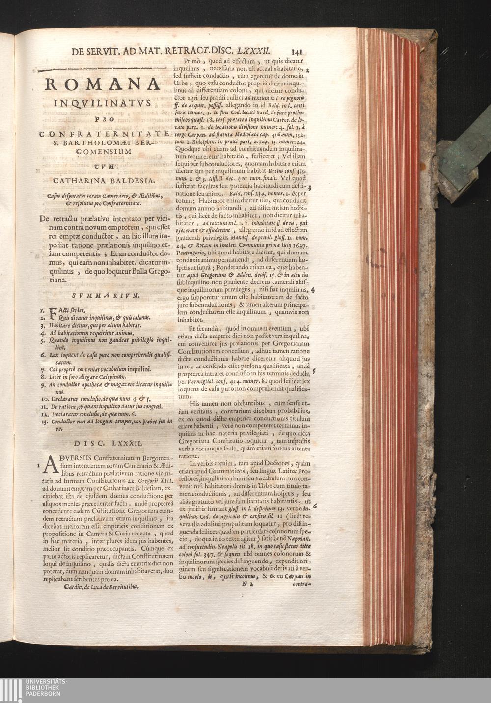 Disc. LXXXII. Romana Inquilinatus. De retractu prælativo intentato per vicinum contra[...]