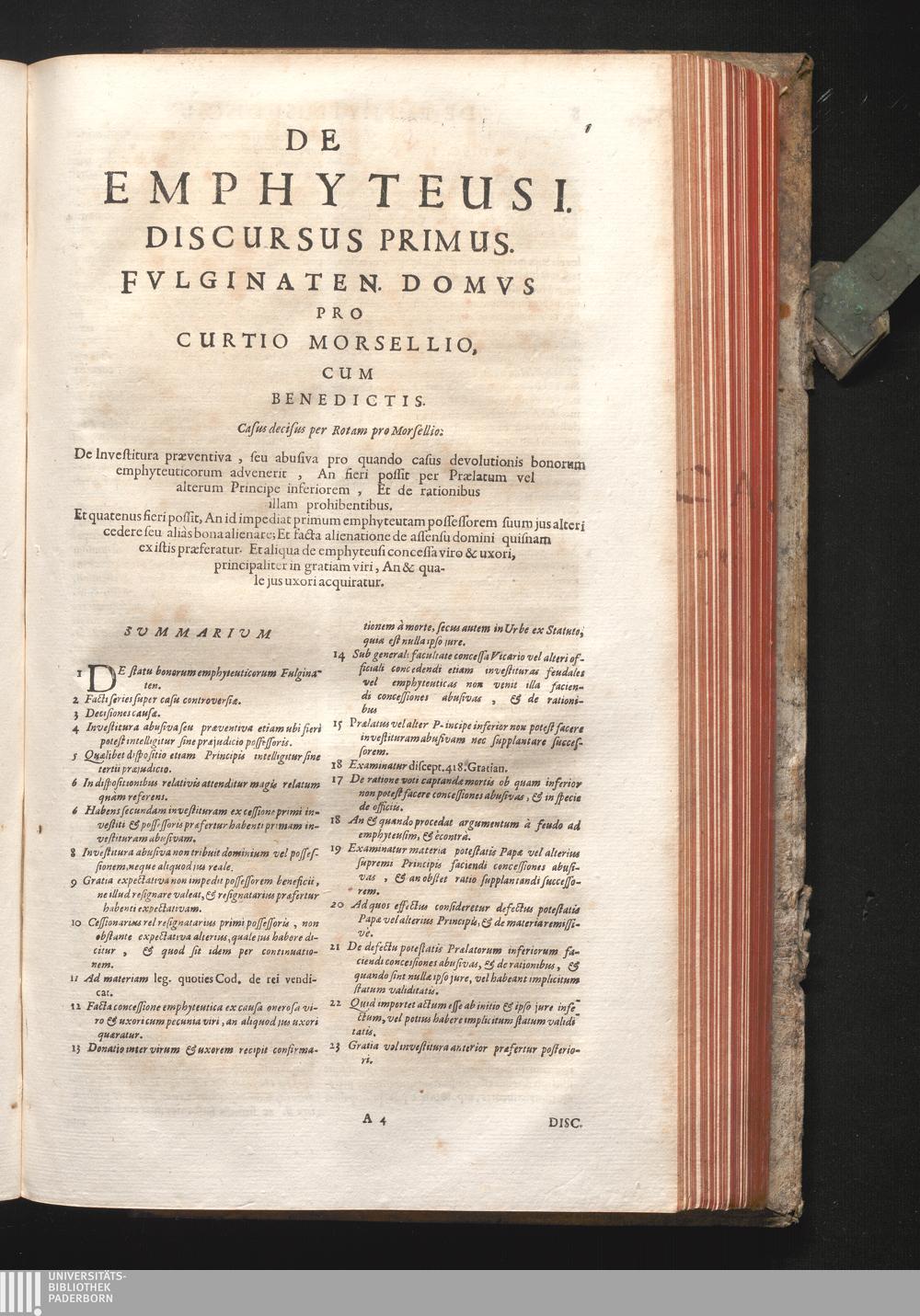 Discursus I. Fulginaten, Domus. De investitura præventiva, seu abusiva pro quando[...]