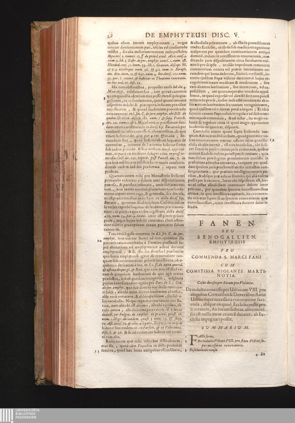 Disc. VI. Fanen. seu Senogallien. emphyteusis. De indulto concesso per Urbanum VIII.[...]