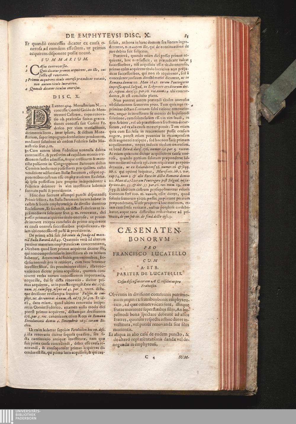 Disc. XI. Cæsenaten. bonorum. Obventis in divisione communis patrimonii in unum ex[...]