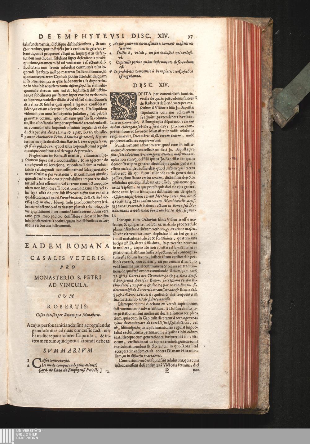 Disc. XIV. Eadem Romana Casalis veteris. A cujus persona initiandæ sint, ac regulandæ[...]