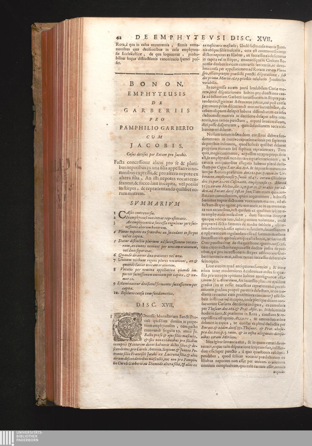 Disc. XVII. Bonon. emphyteusis de Garberiis. Facta concessione alicui pro se, & pluribus[...]