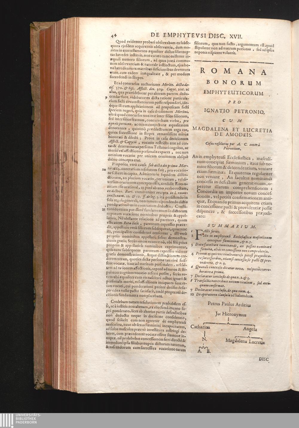 Disc. XVIII. Romana bonorum emphyteuticorum. An in Emphyteuti Ecclesiastica, masculinum[...]