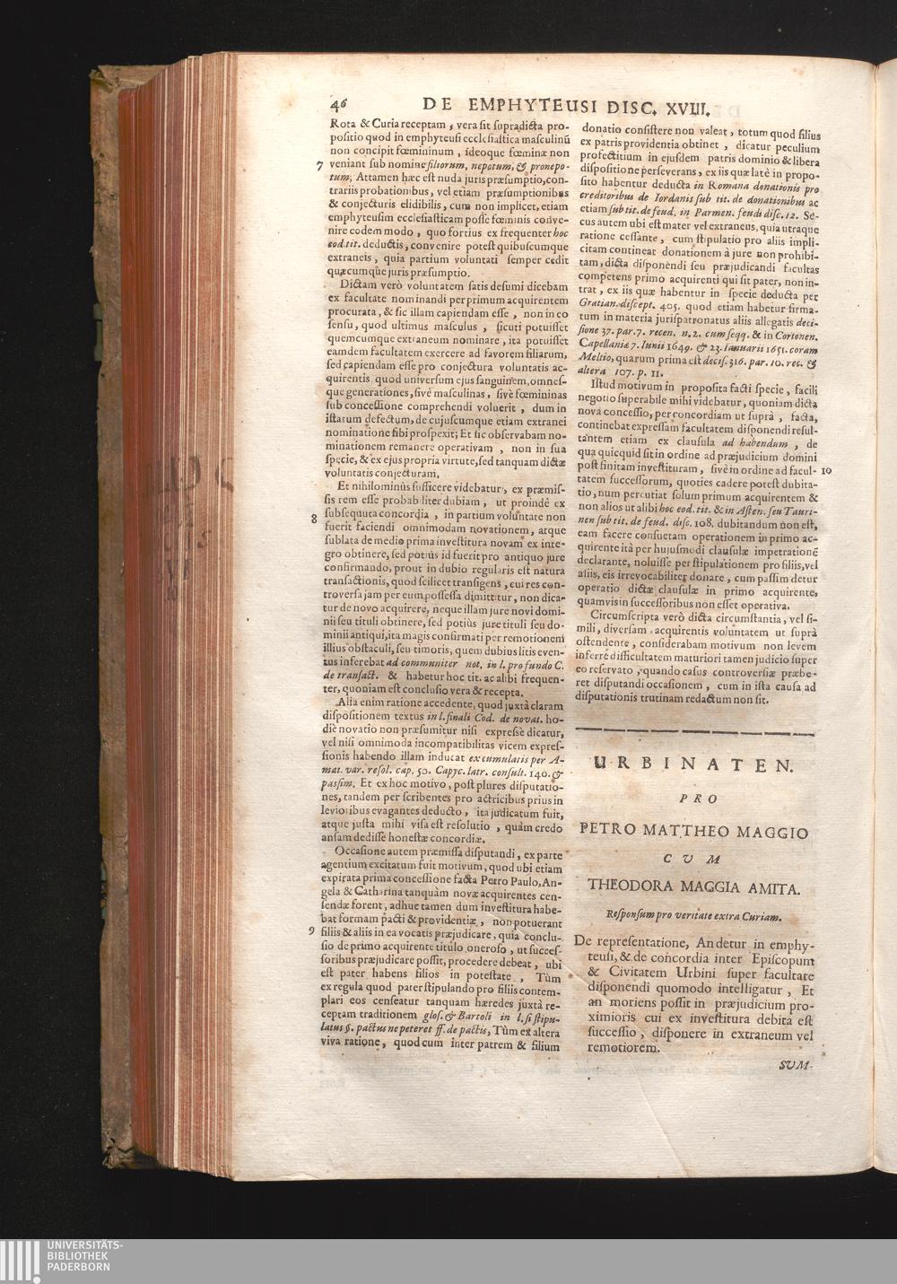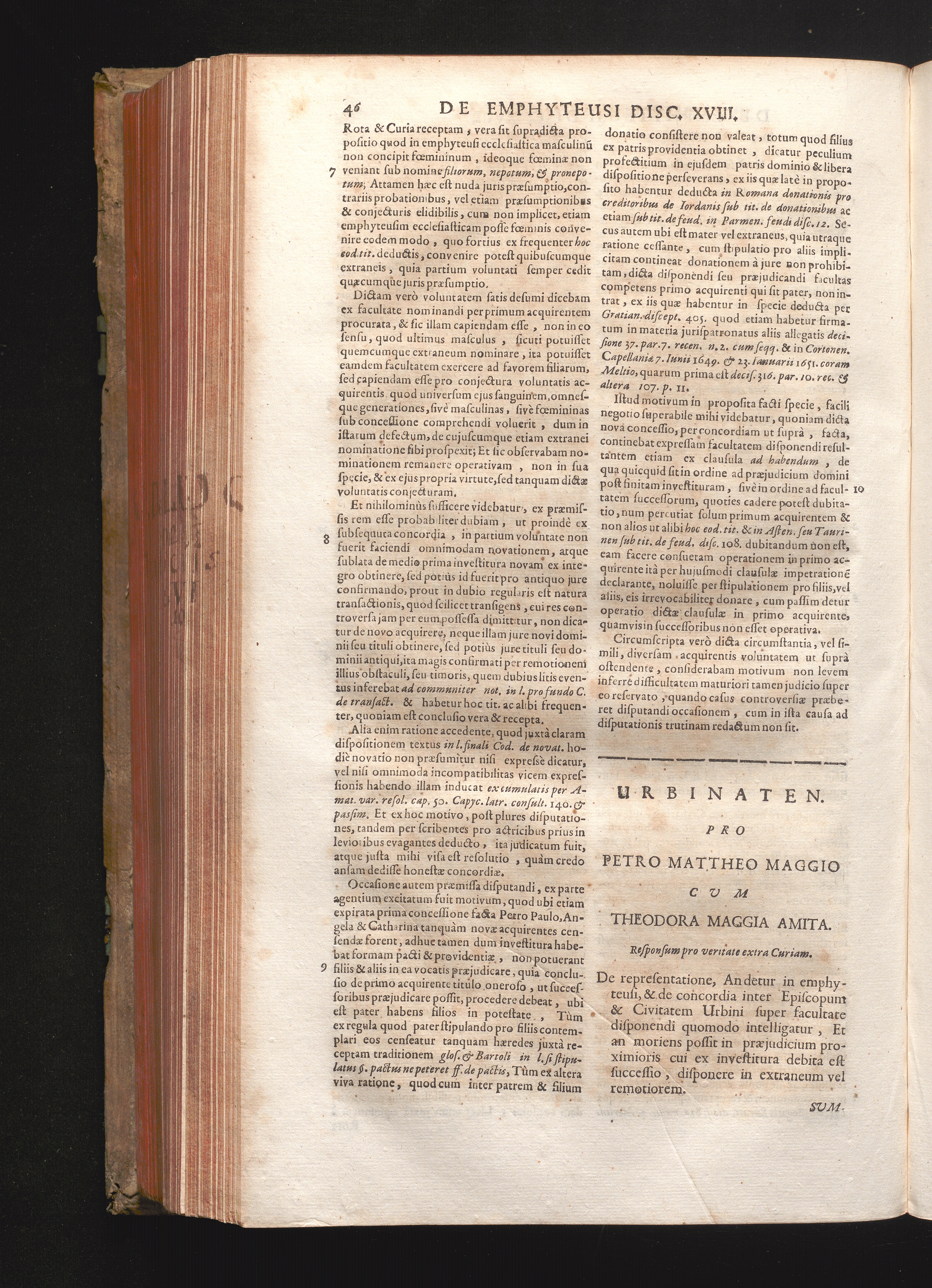 Disc. XIX. Urbinaten. De repræsentatione an detur in emphyteusi; Et de concordia[...]