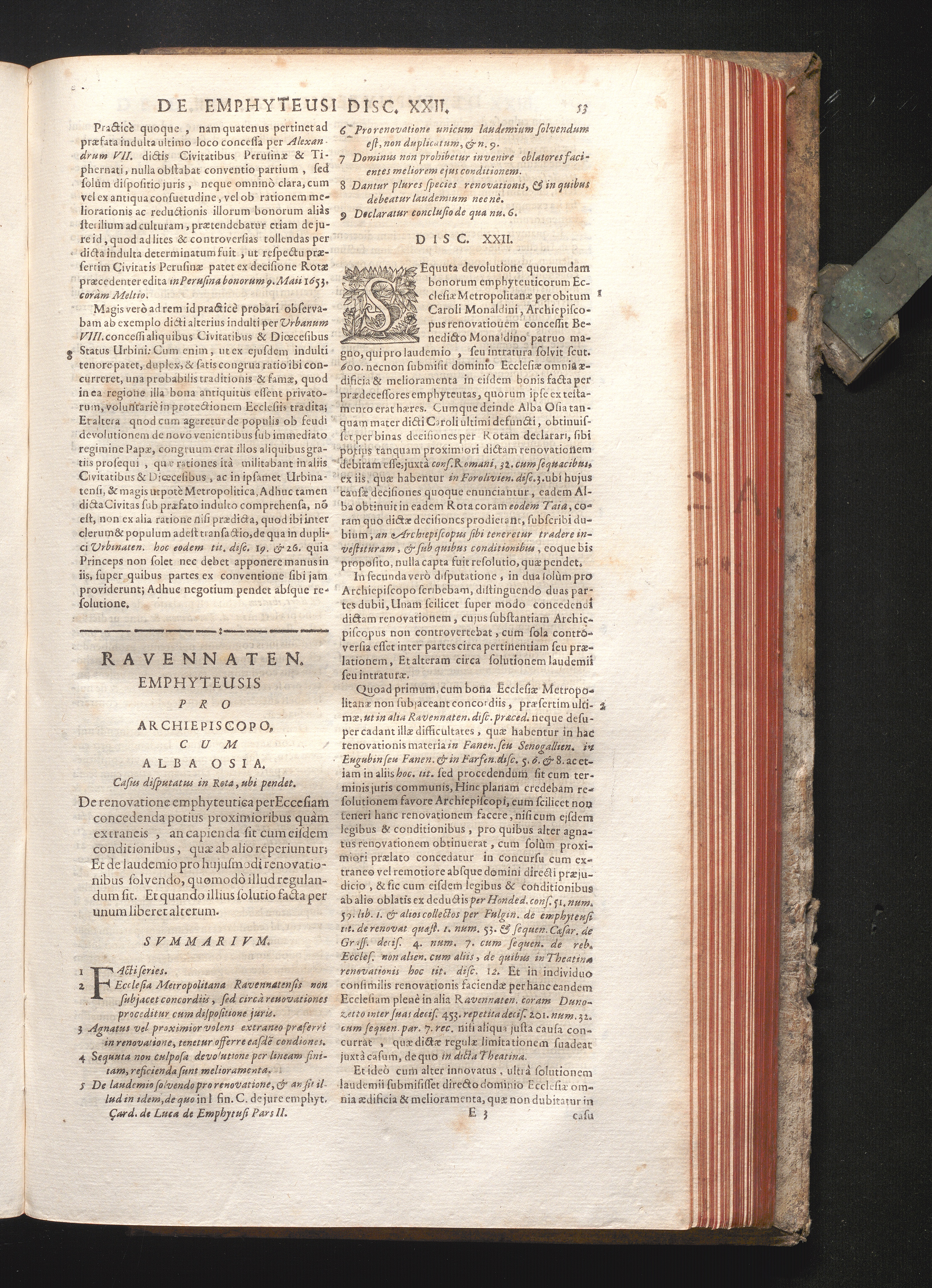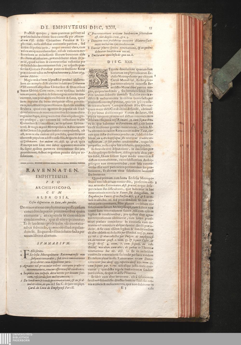 Disc. XXII. Ravennaten. emphyteusis. De renovatione emphyteutica per Ecclesiam concedenda[...]