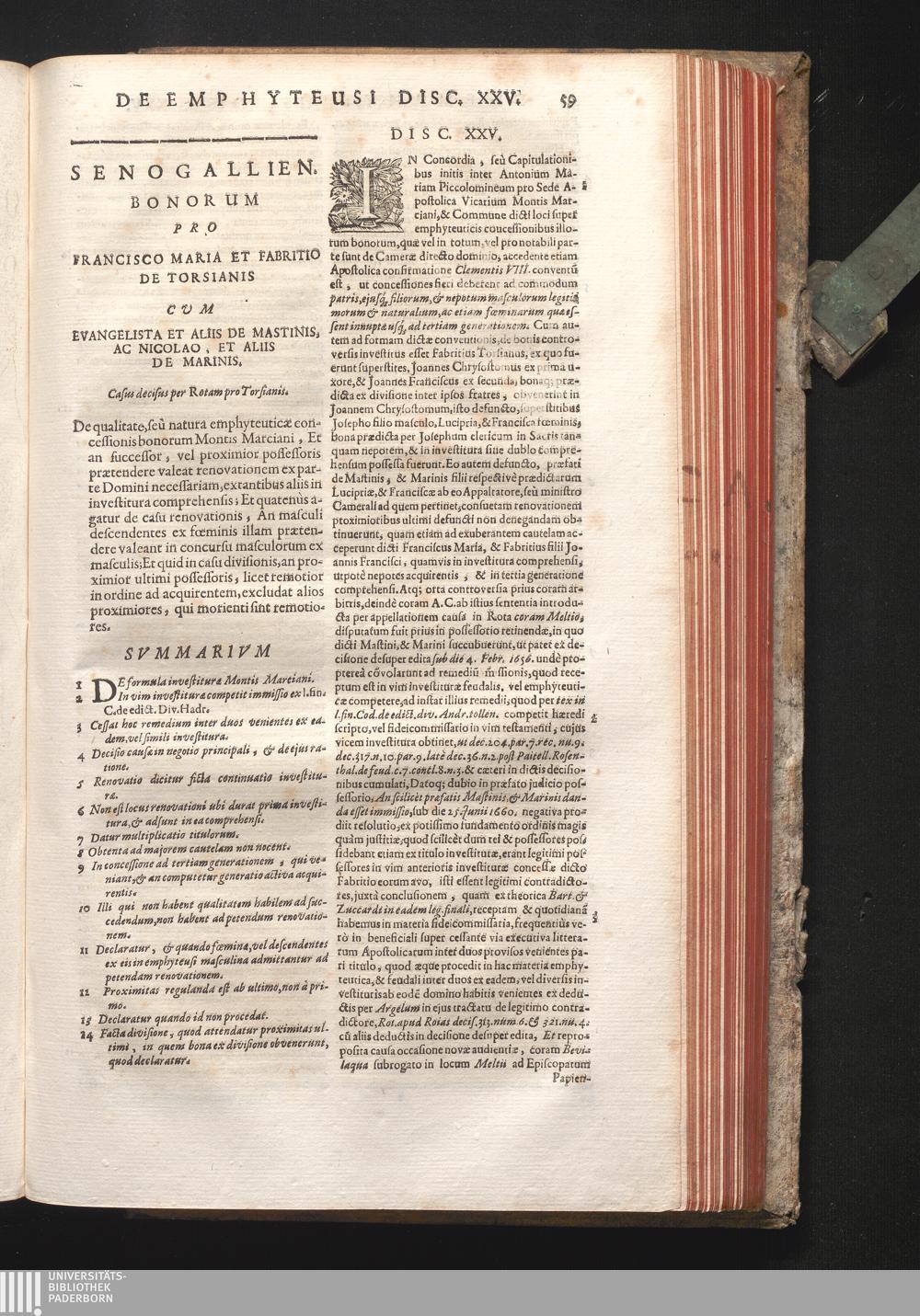 Disc. XXV. Senogallien. bonorum. De qualitate, seu natura emphyteuticæ concessionis[...]