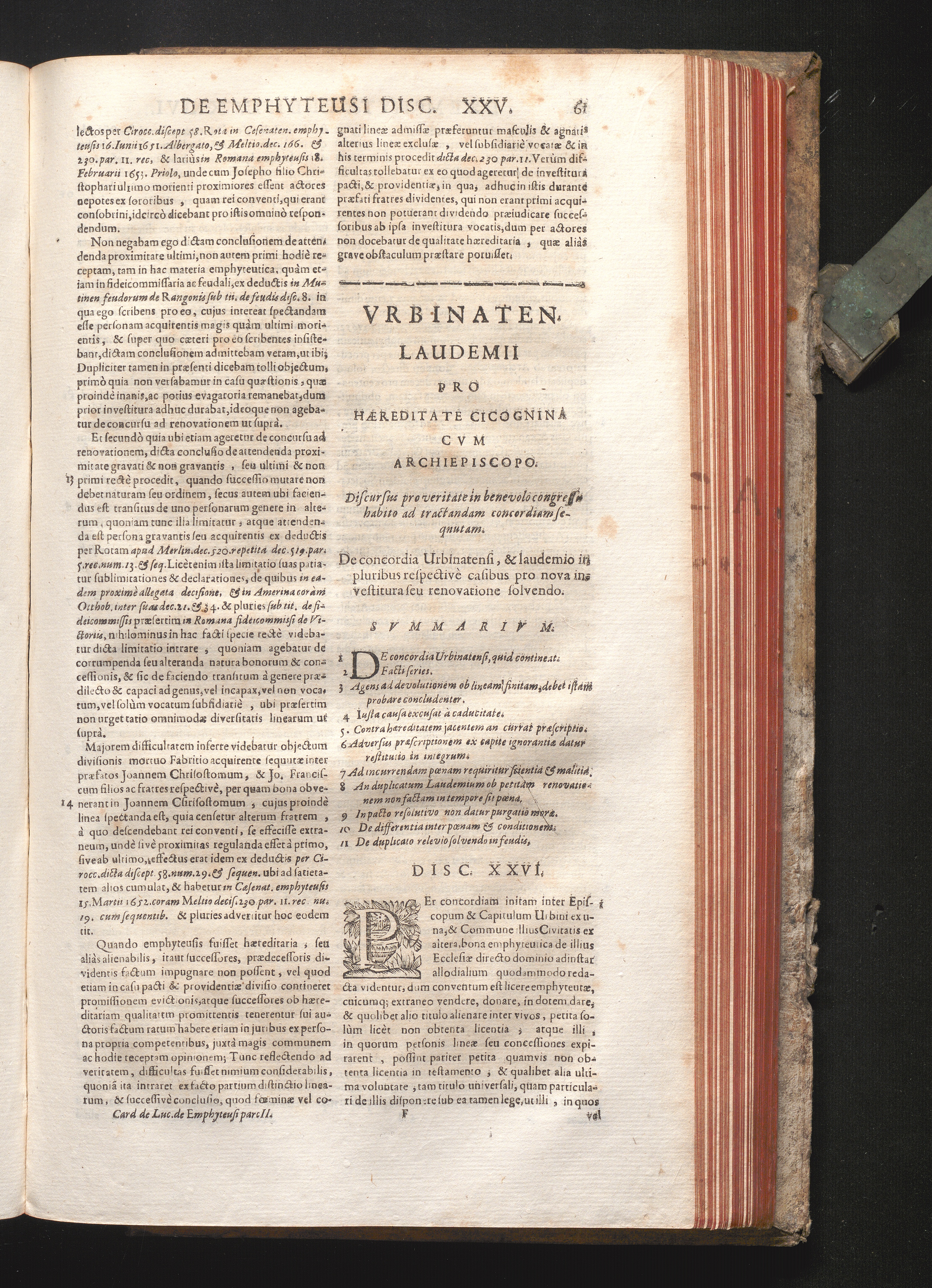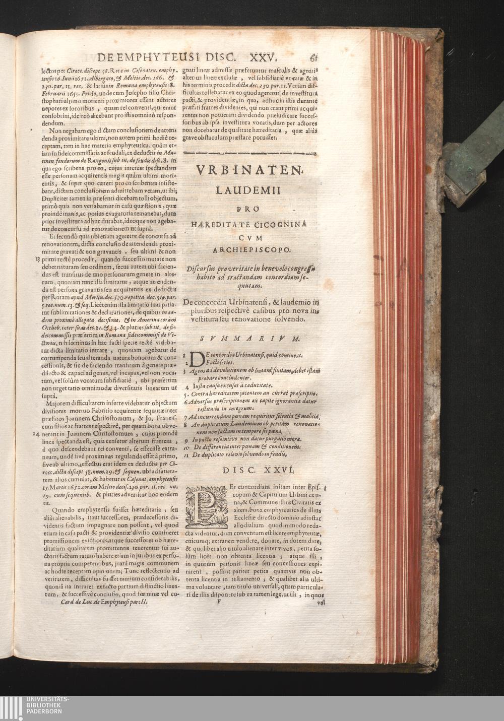Disc. XXVI. Urbinaten. laudemii. De concordia Urbinatensi, & laudemio in pluribus[...]