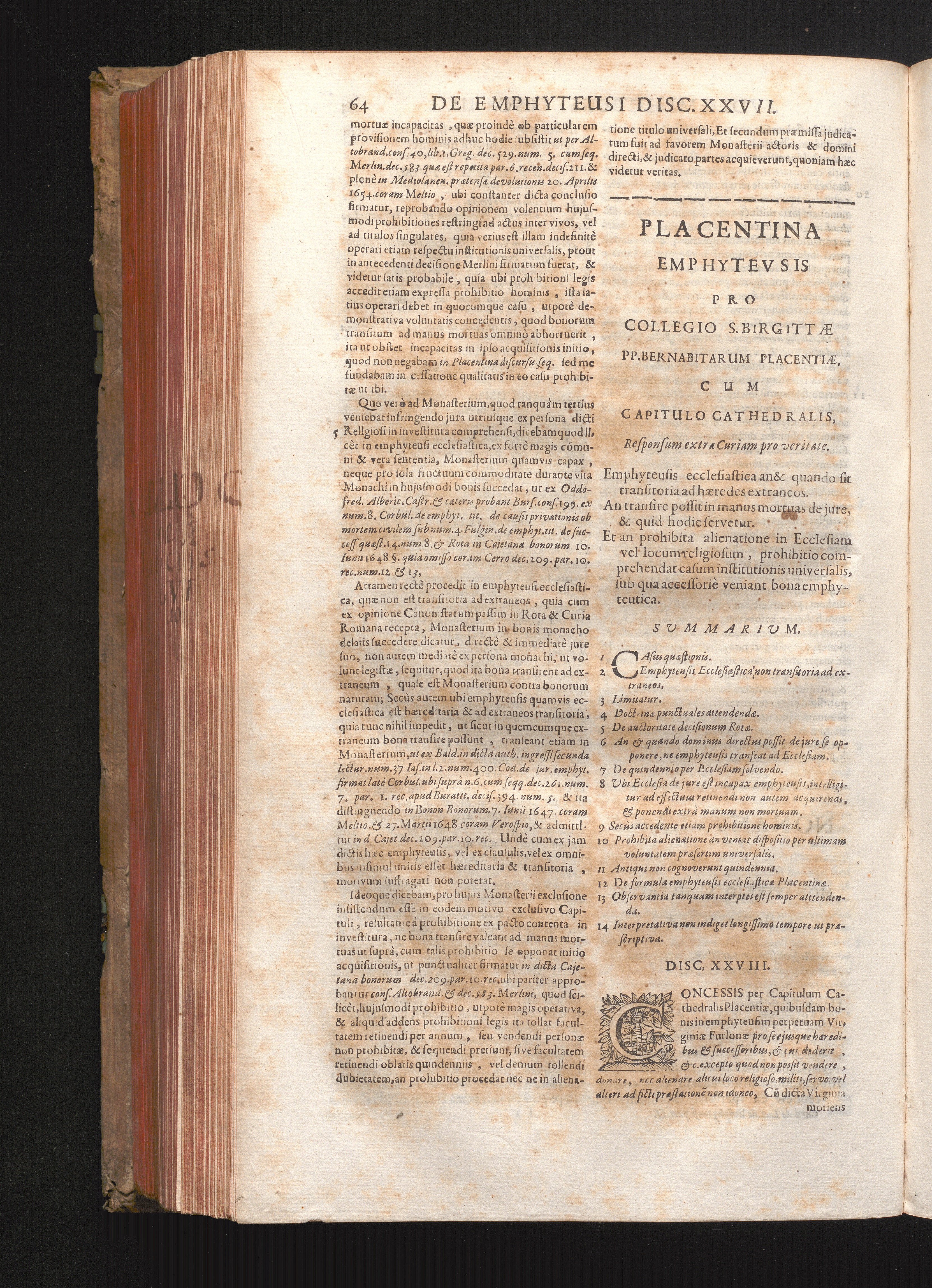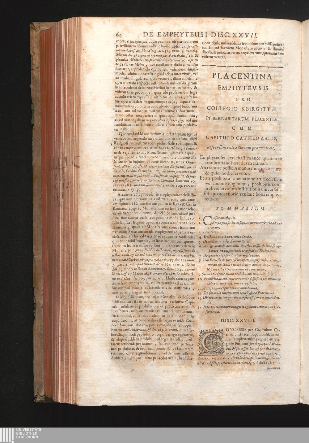 Disc. XXVIII. Placentina emphyteusis. Emphyteusis ecclesiastica an & quando sit transitoria[...]