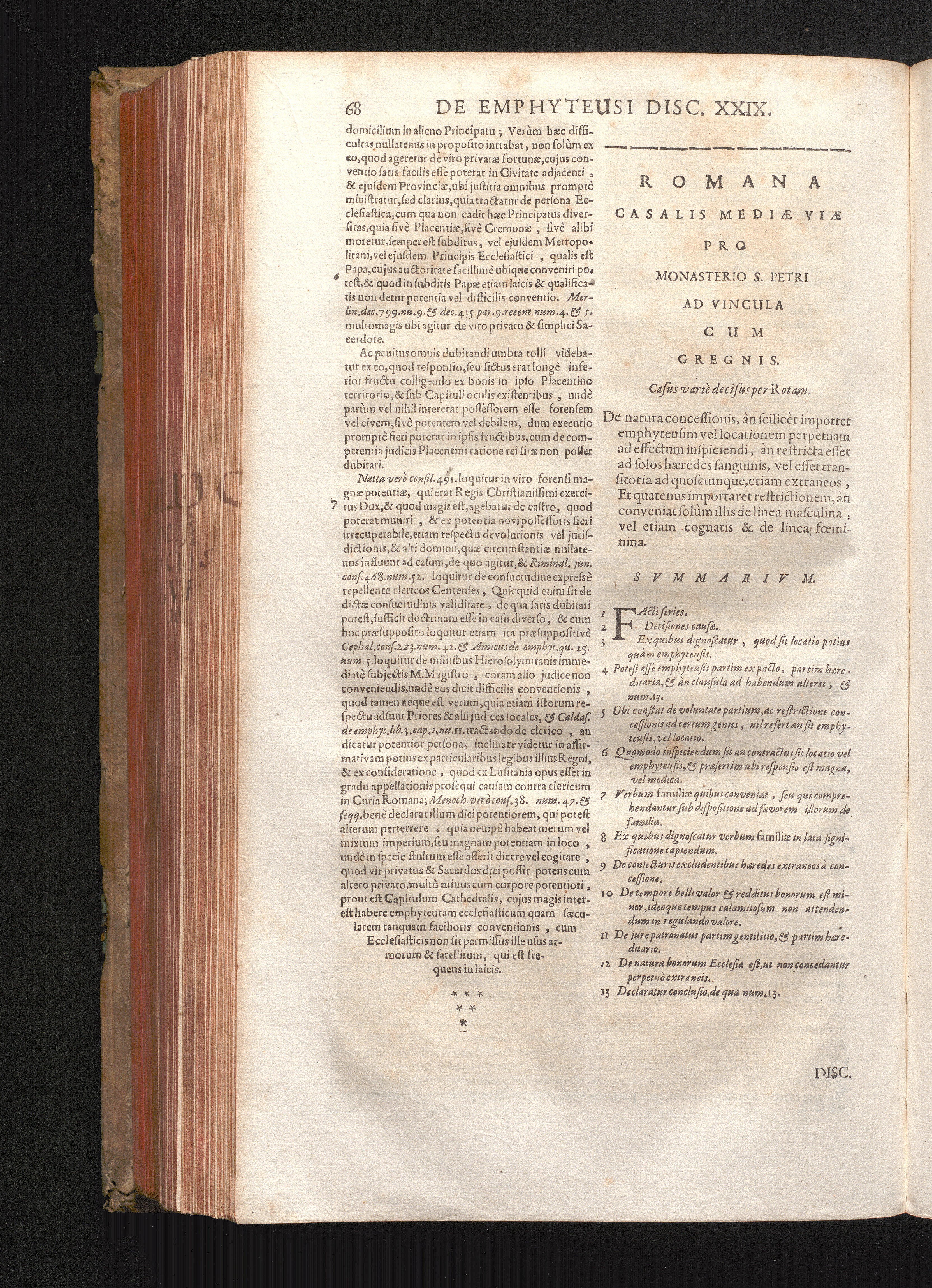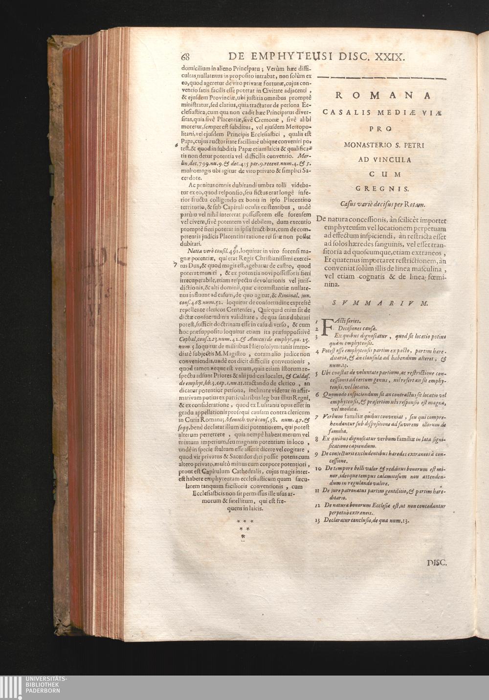 Disc. XXX. Romana Casalis mediæ viæ. De natura concessionis, an scilicèt importet[...]