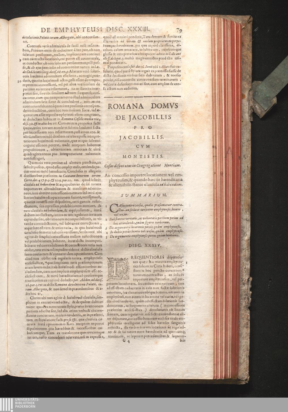 Disc. XXXIV. Romana domus de Jacobillis. An concessio importet locationem, vel emphyteusim,[...]