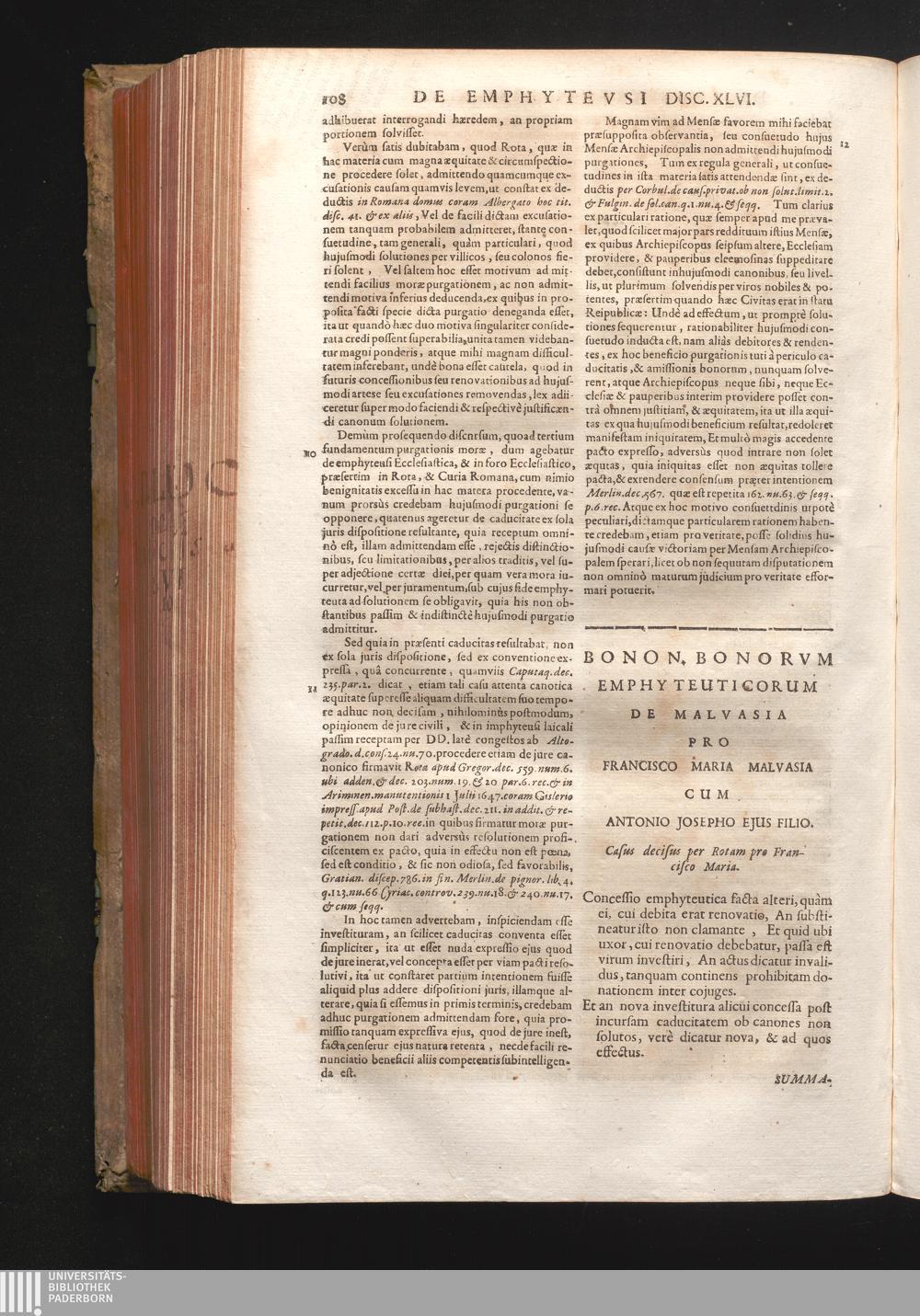 Disc. XLVII. Bonon. Bonorum emphyteuticorum de Malvasia. Concessio emphyeutica facta[...]