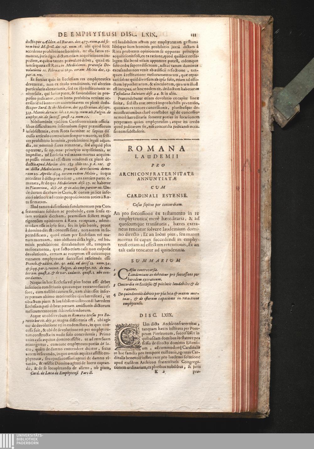 Disc. XLIX. Romana laudemii. An pro successione ex testamento in re emphyteutica[...]