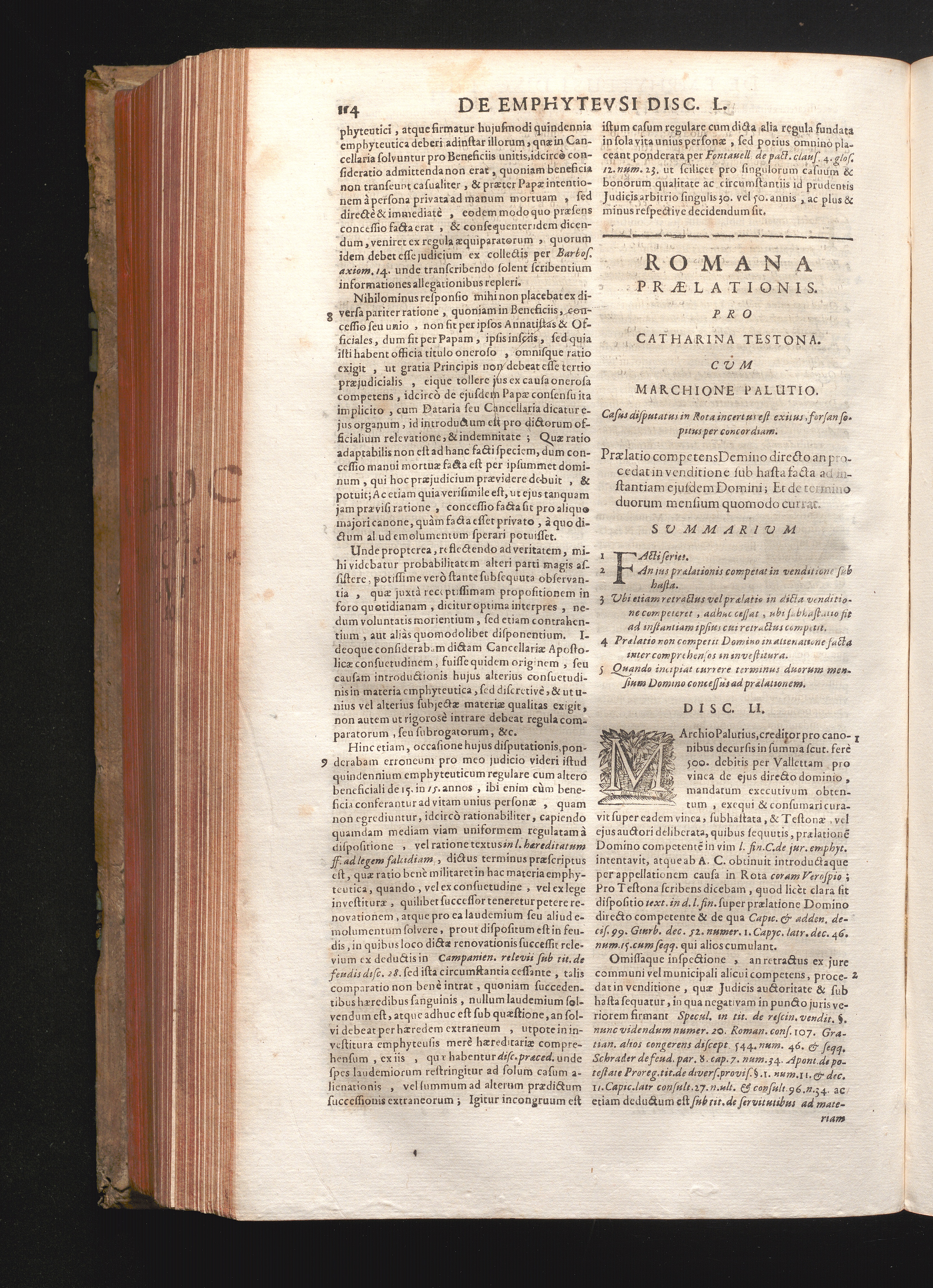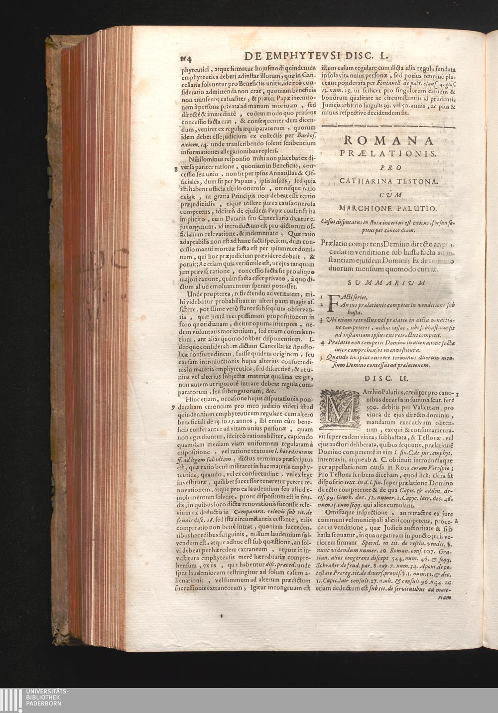 Disc. LI. Romana prælationis. Prælatio competens domino directo an procedat in venditione[...]