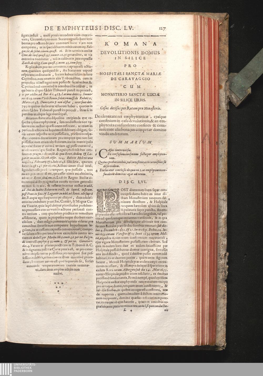 Disc. LVI. Romana devolutionis domus Silice. De identitate rei emphyteuticæ, ejusque[...]