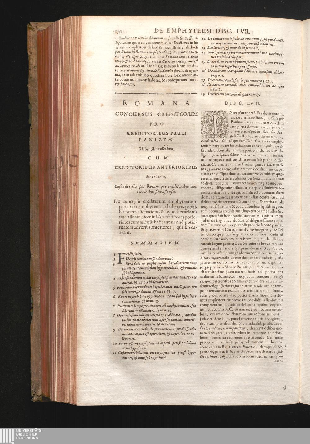 Disc. LVIII. Romana concursus creditotum. De concursu creditorum emphyteutæ in pretio[...]