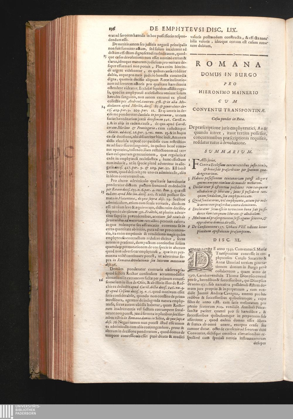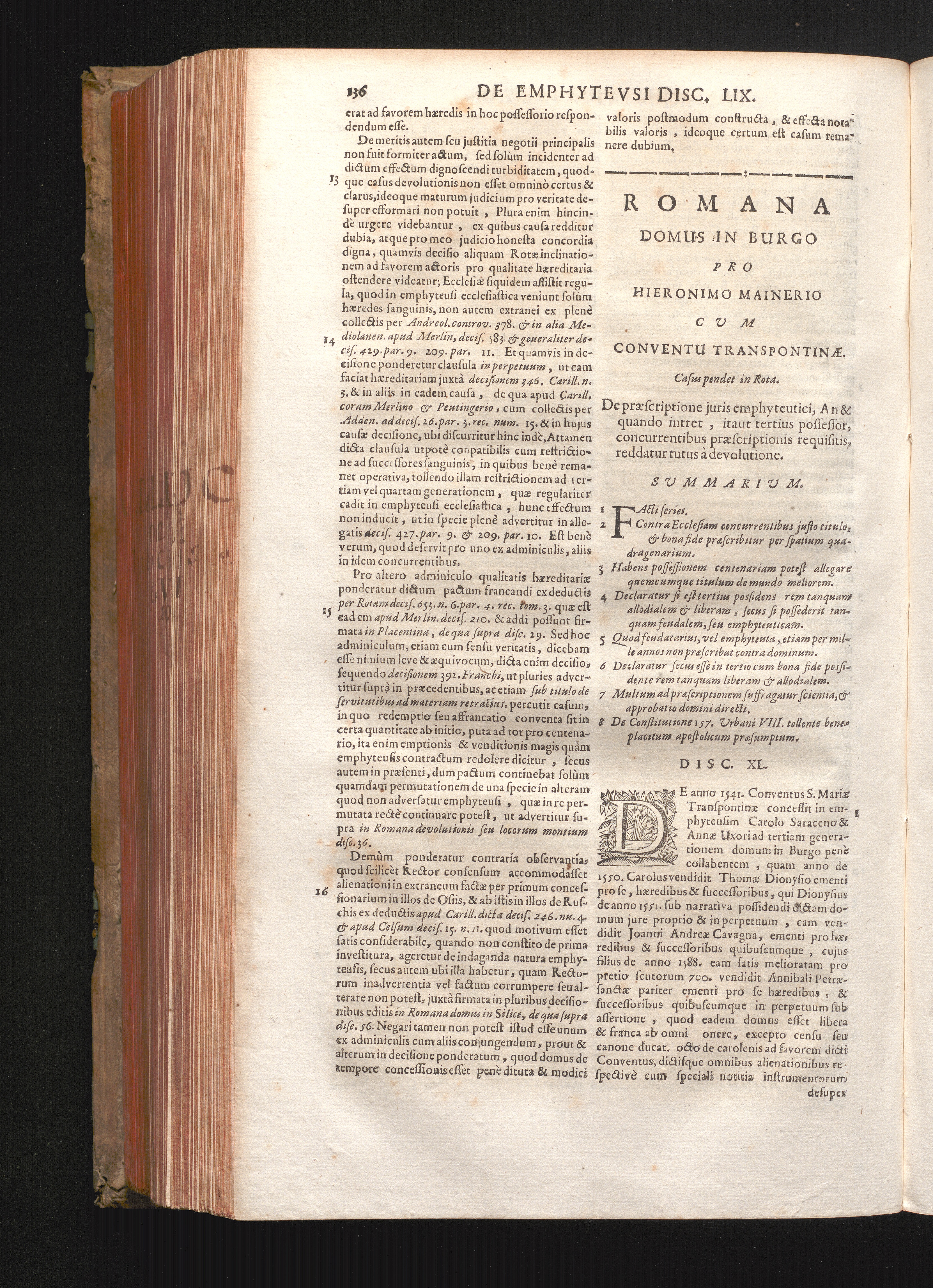 Disc. LX. Romana domus in burgo. De præscriptione juris emphyteutici, An & quando[...]