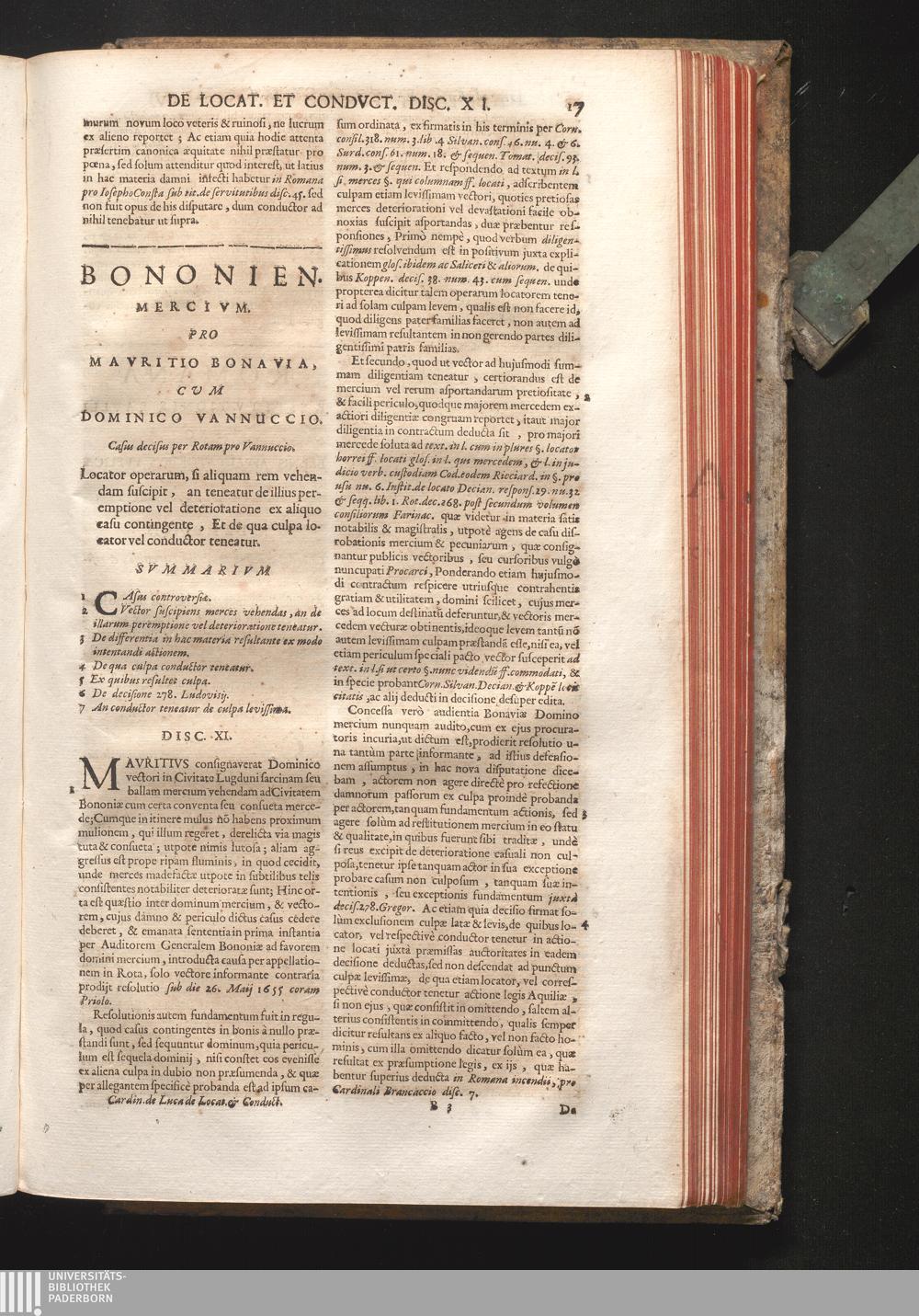 Disc. XI. Bononien. Mercium. Locator operarum si aliquam rem vehendam suscipit, an[...]