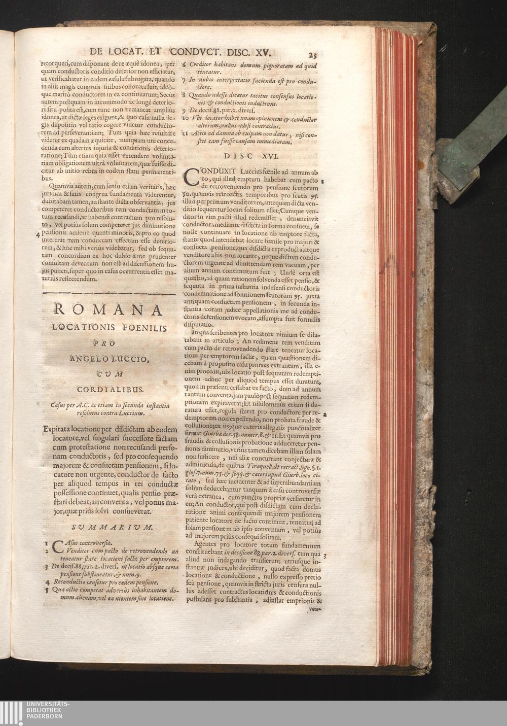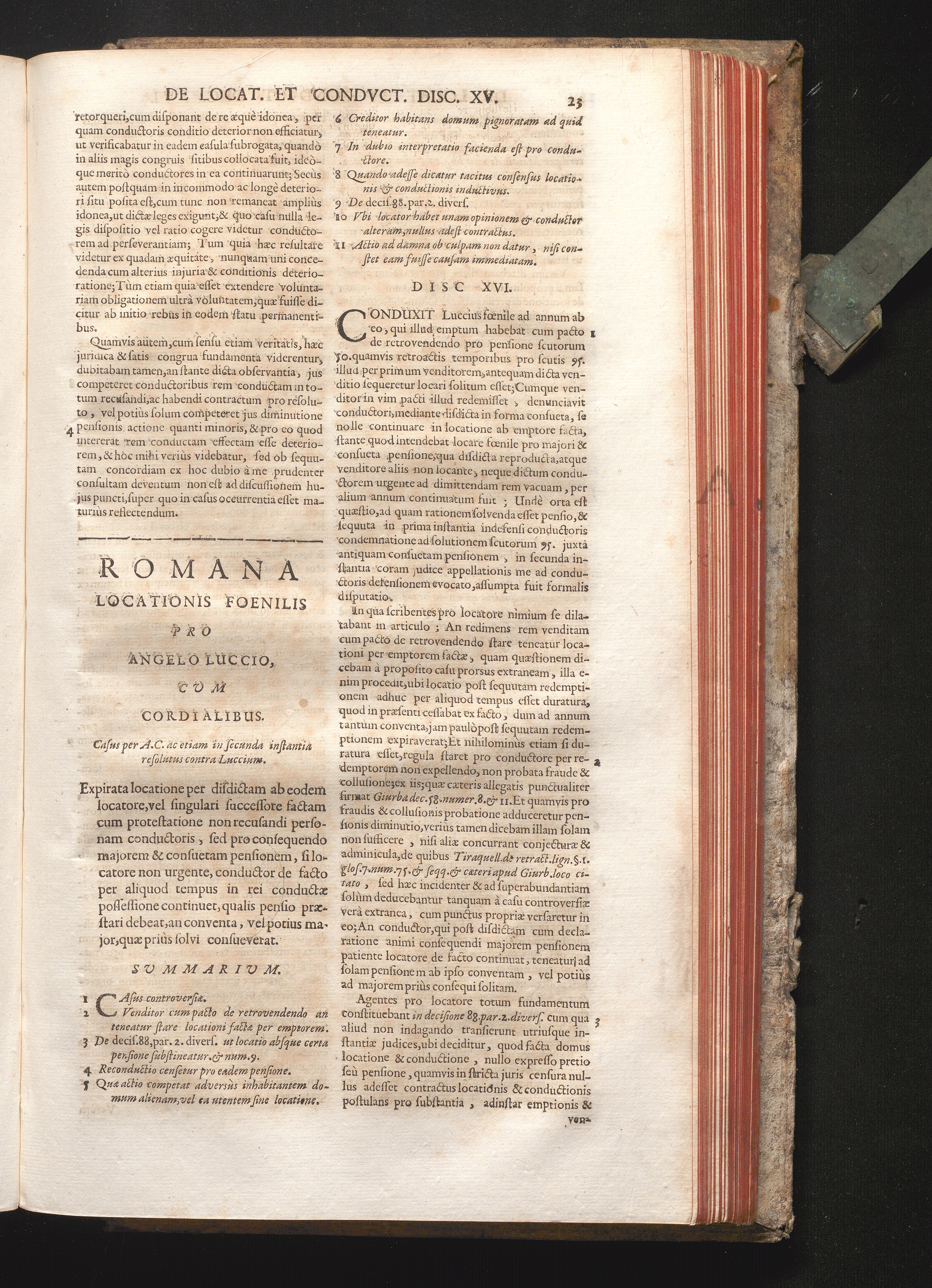 Disc. XVI. Romana Locationis Fœnilis. Expirata locatione per disdictam ab eodem locatore,[...]