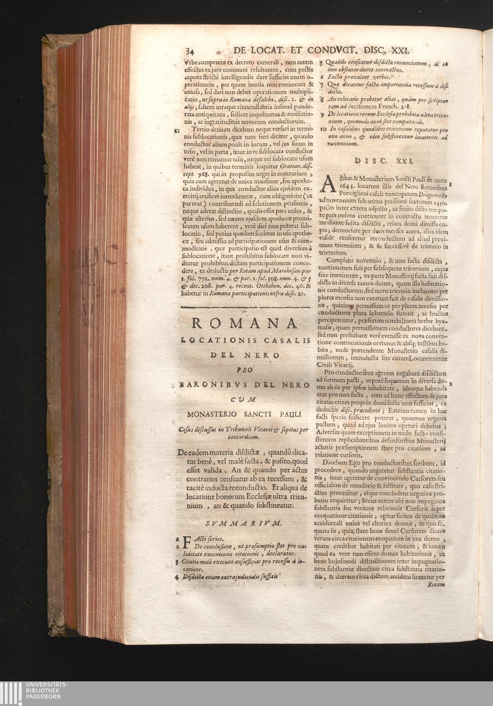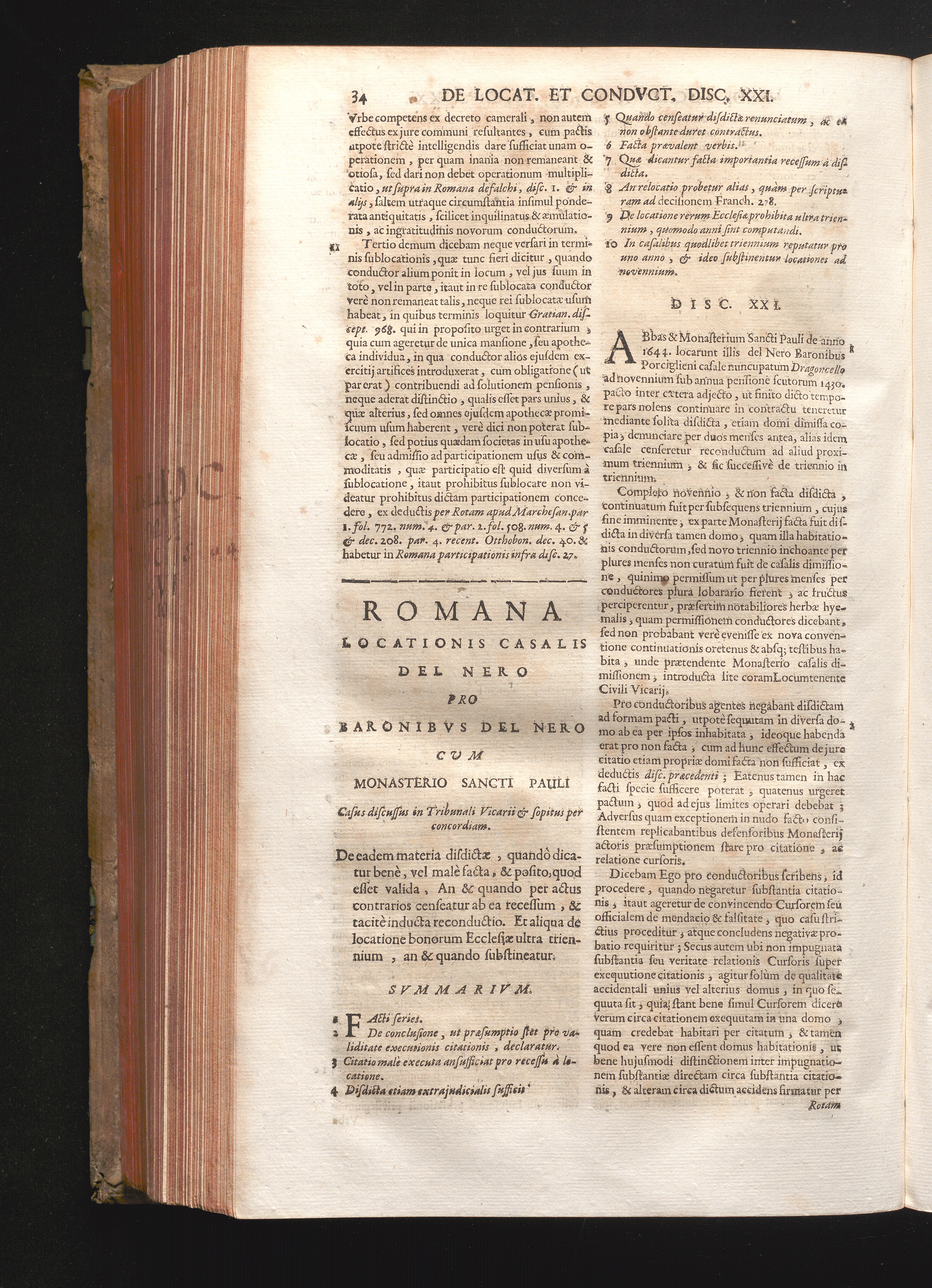 Disc. XXI. Romana locationis Casalis del Nero. De eadem materia disdictæ, quando[...]