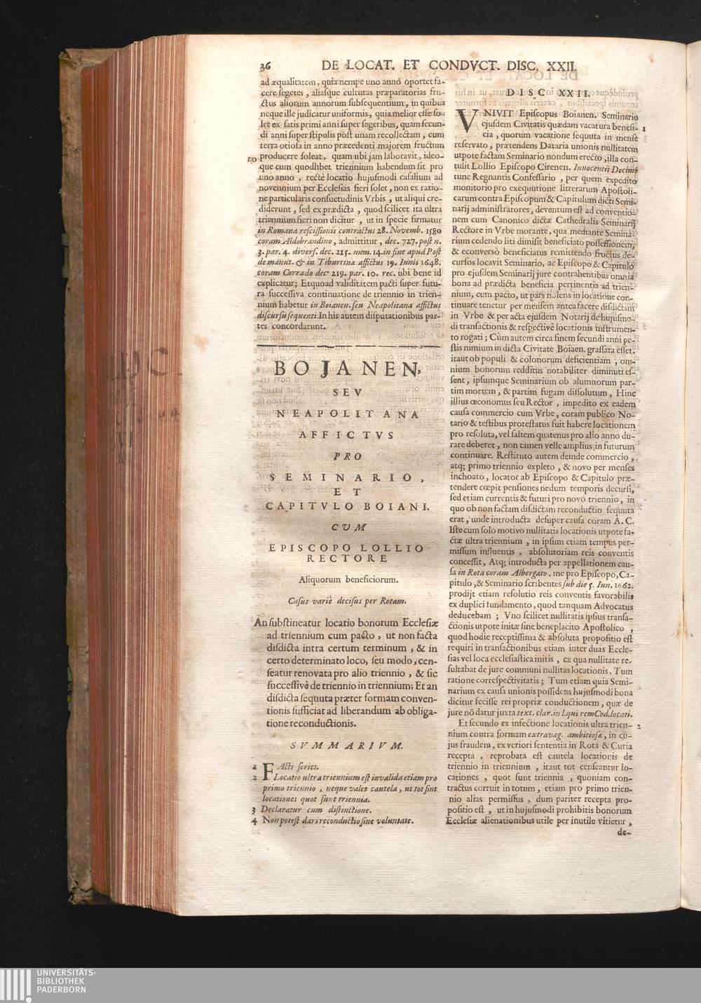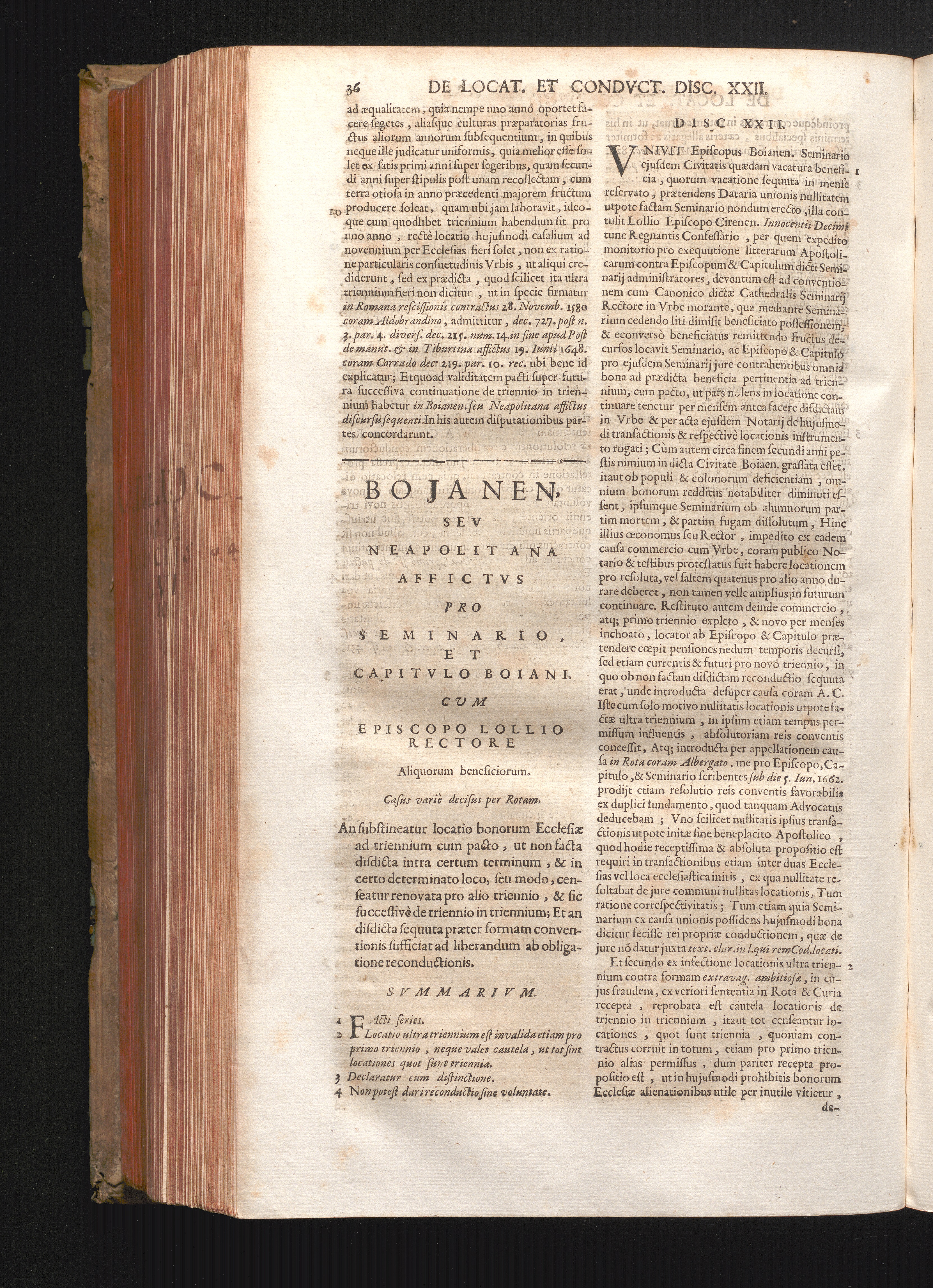 Disc. XXII. Bojanen. seu Neapolitana affictus. An substineatur locatio bonorum Ecclesiæ[...]
