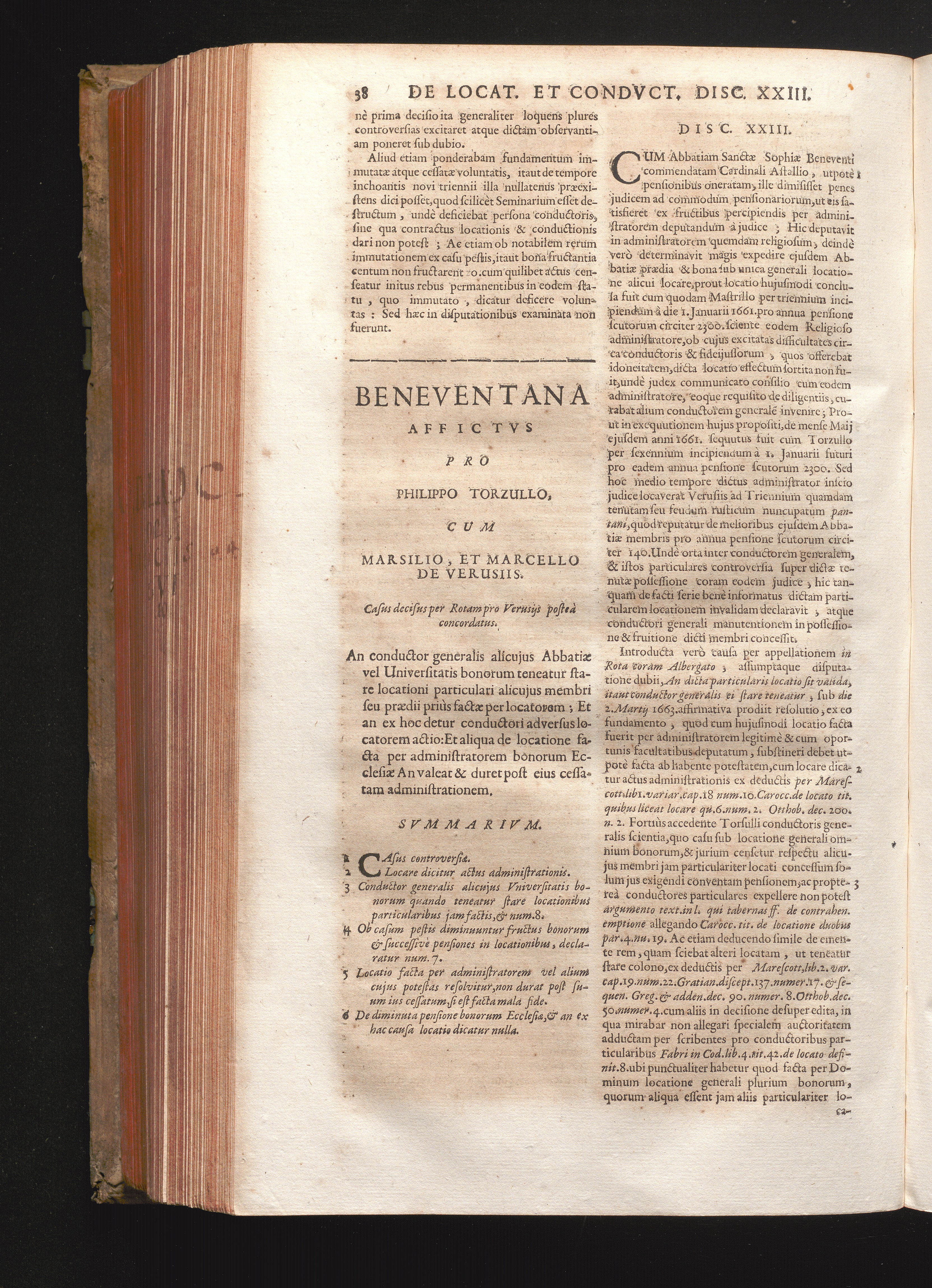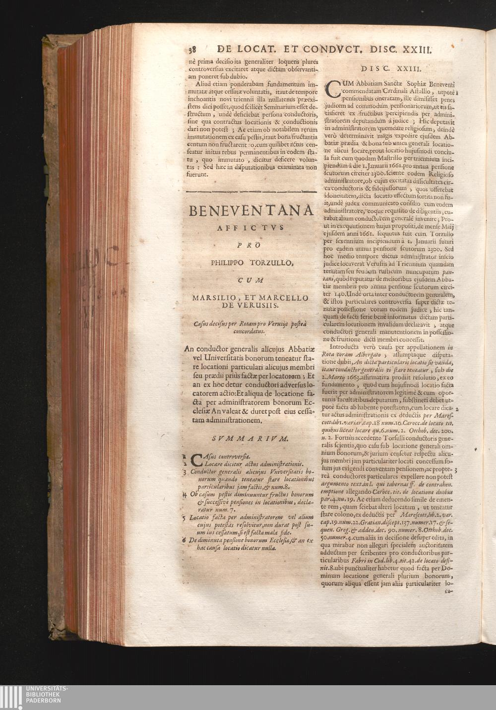 Disc. XXIII. Beneventana affictus. An conductor generalis alicujus Abbatiæ, vel Universitatis[...]