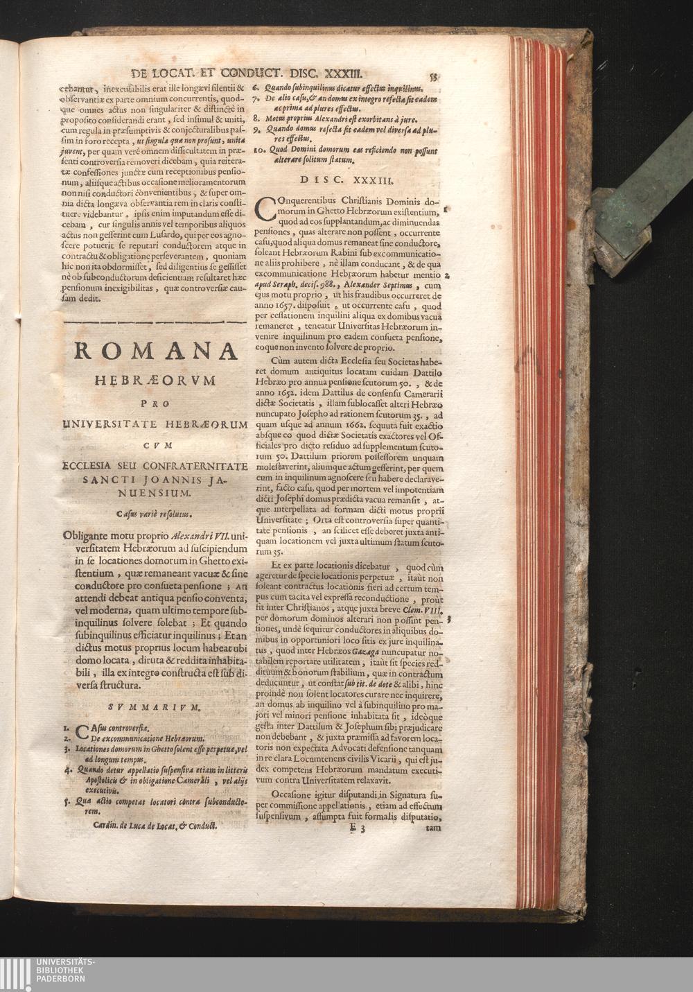 Disc. XXXIII. Romana Hebræorum. Obligante motu proprio Alexandri VII. Universitatem[...]