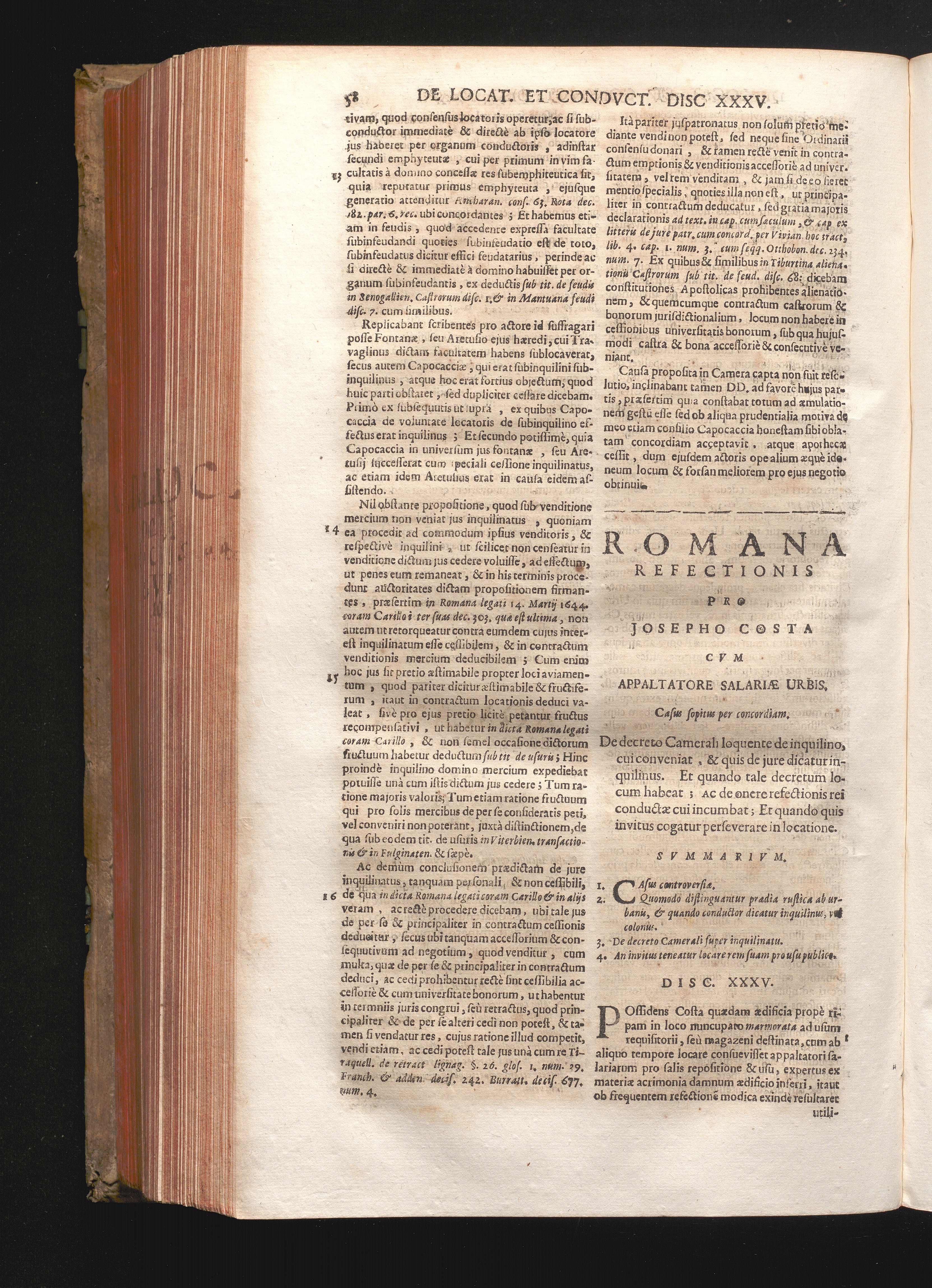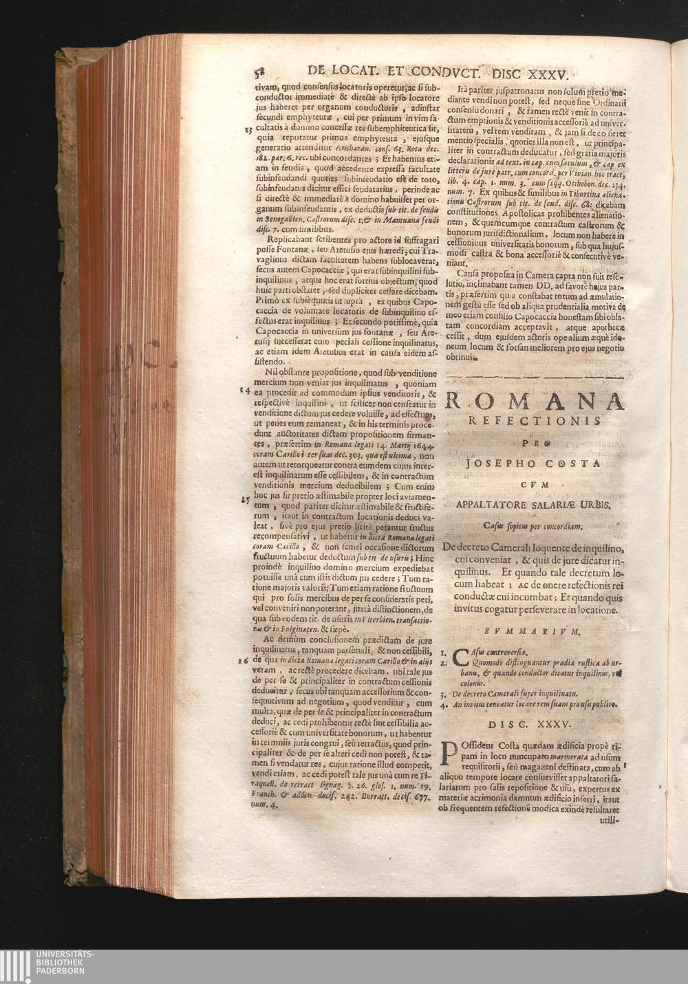 Disc. XXV. Romana refectionis. De decreto Camerali loquente de inquilino, cui conveniat,[...]
