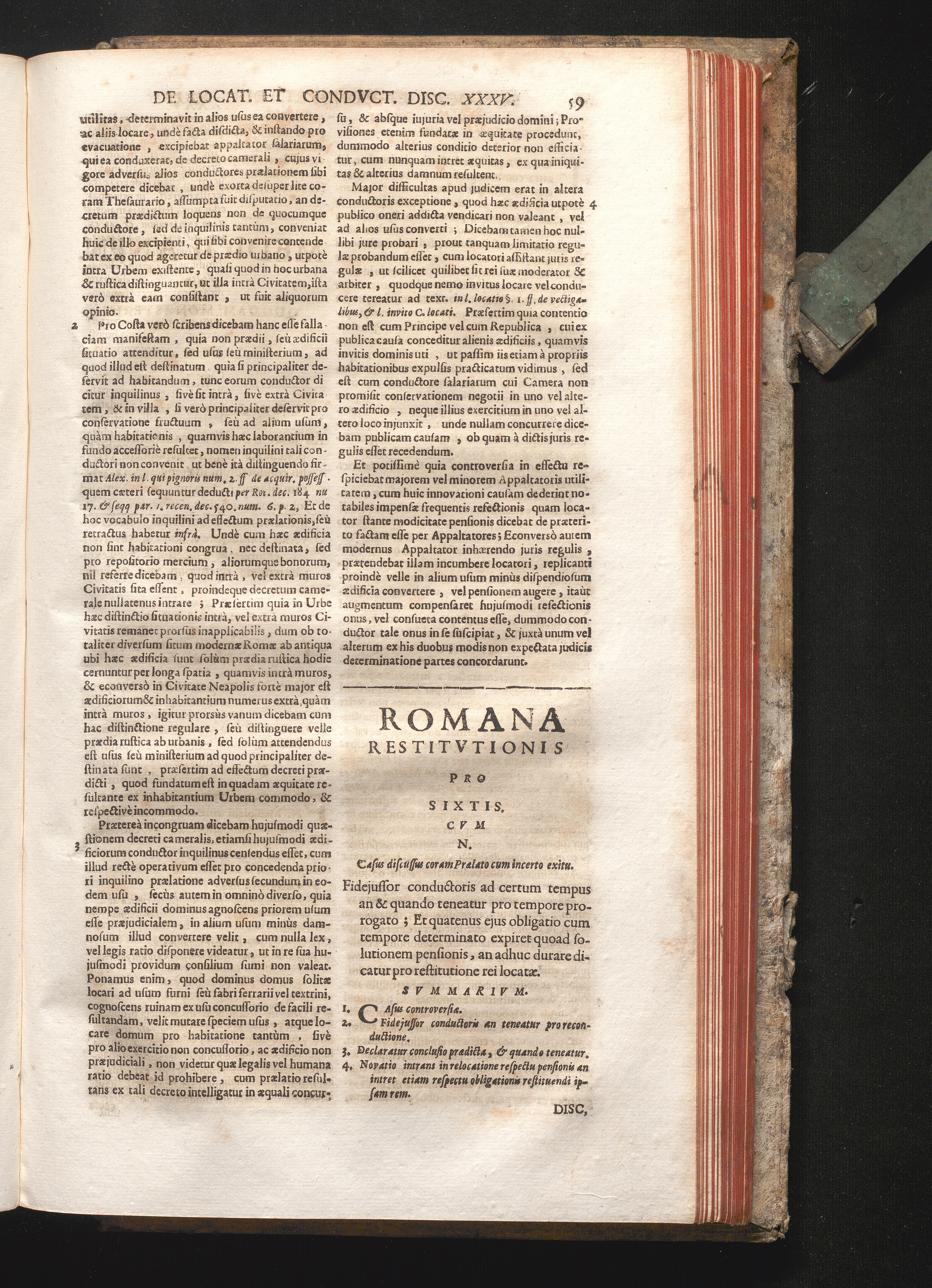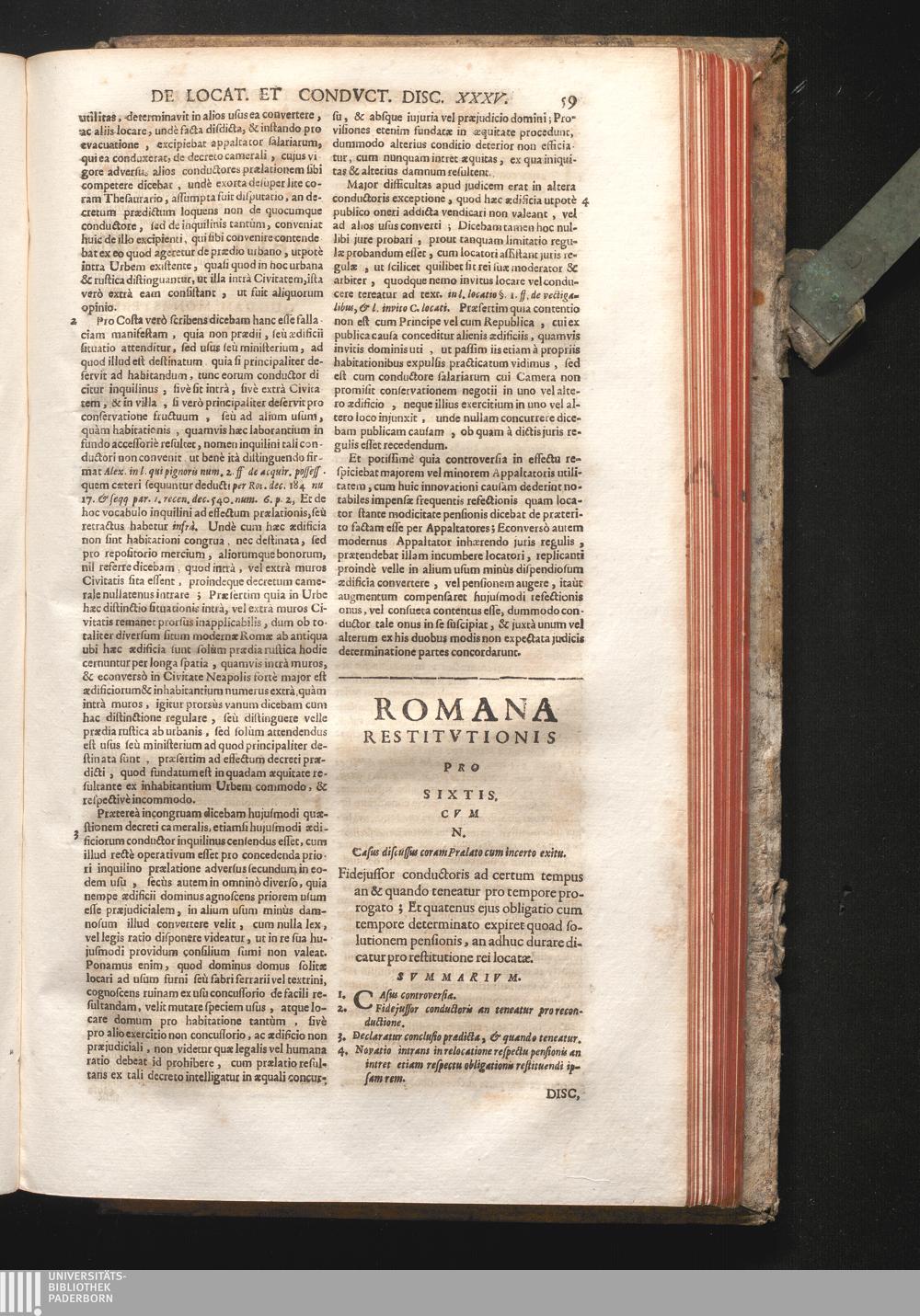 Disc. XXXVI. Romana restitutionis. Fidejussor conductoris ad certum tempus; An &[...]