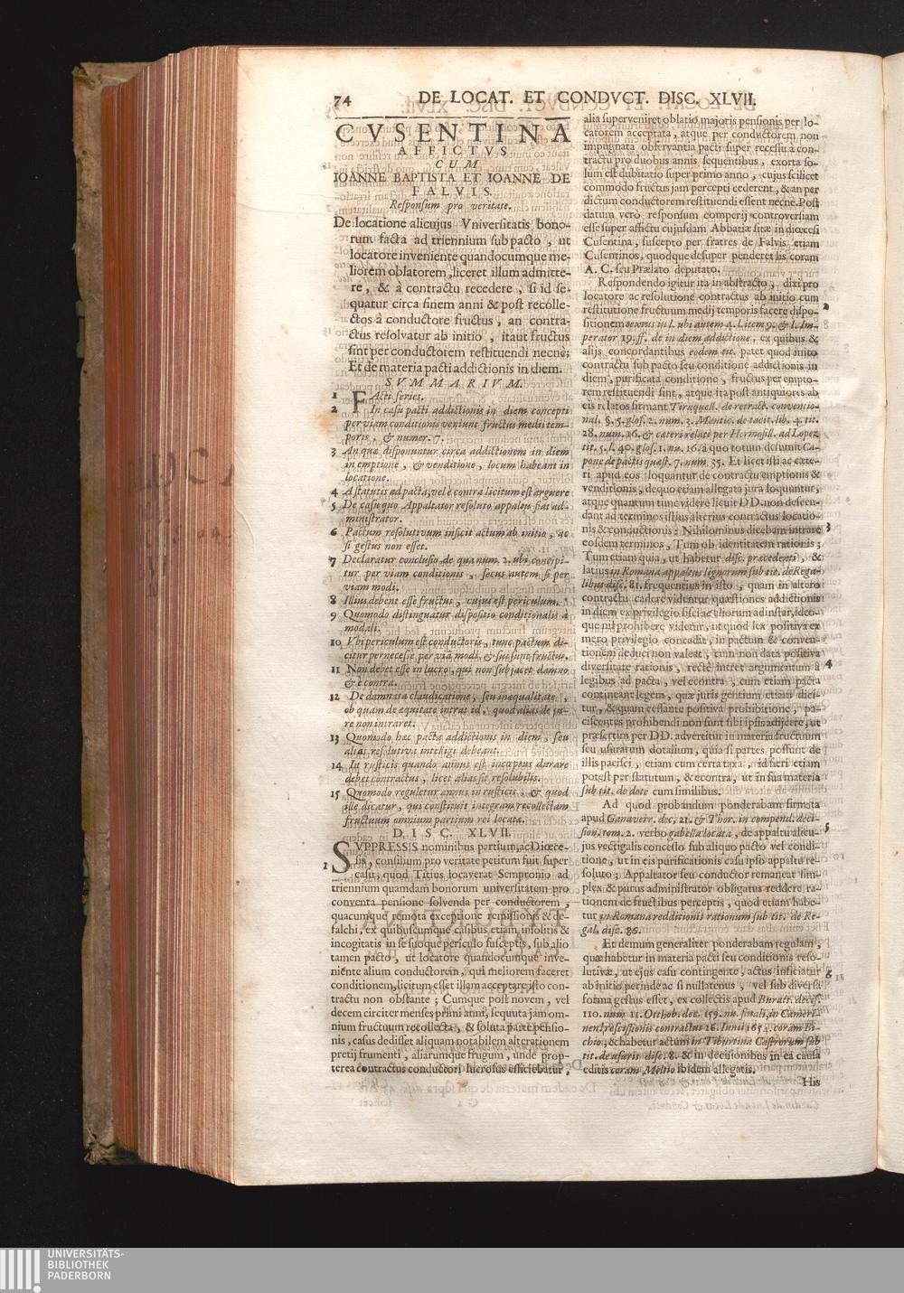 Disc. XLVII. Cusentina affictus. De locatione alicujus Universitatis bonorum facta[...]