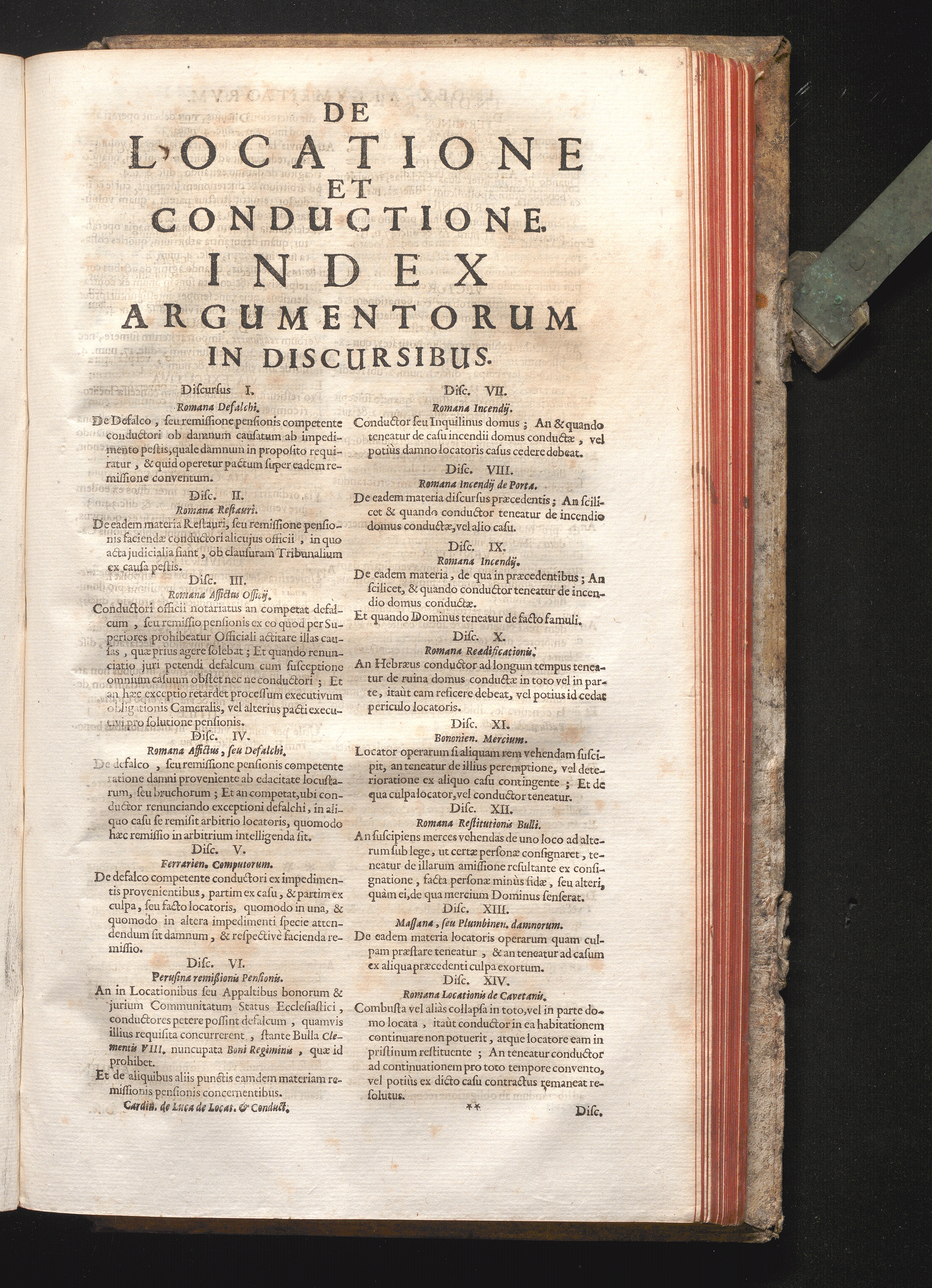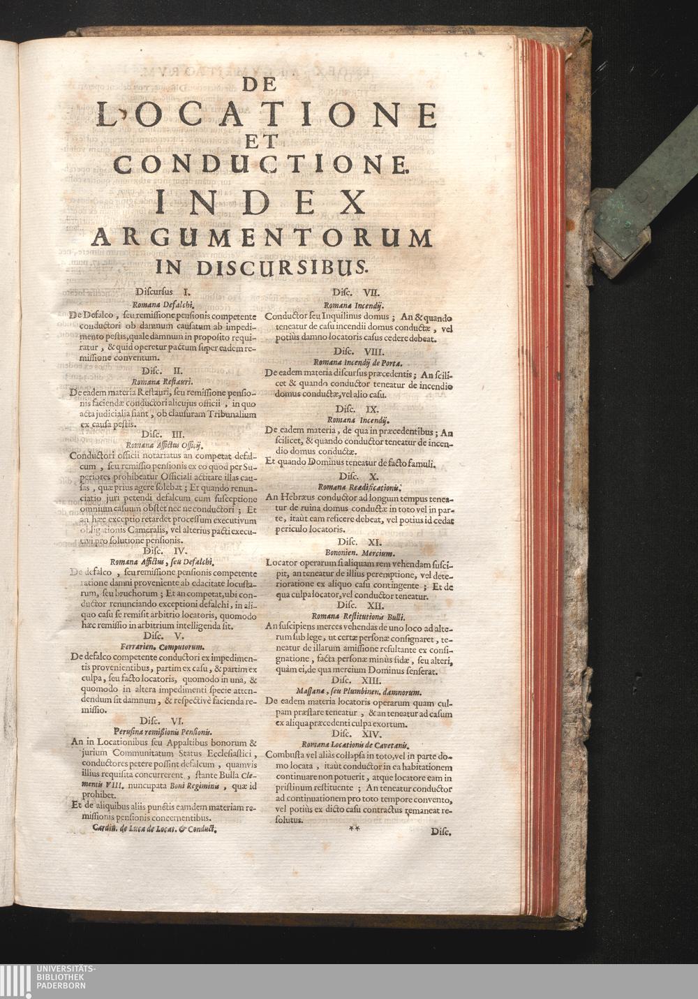 De Locatione Et Conductione Index Argumentorum In Discursibus.