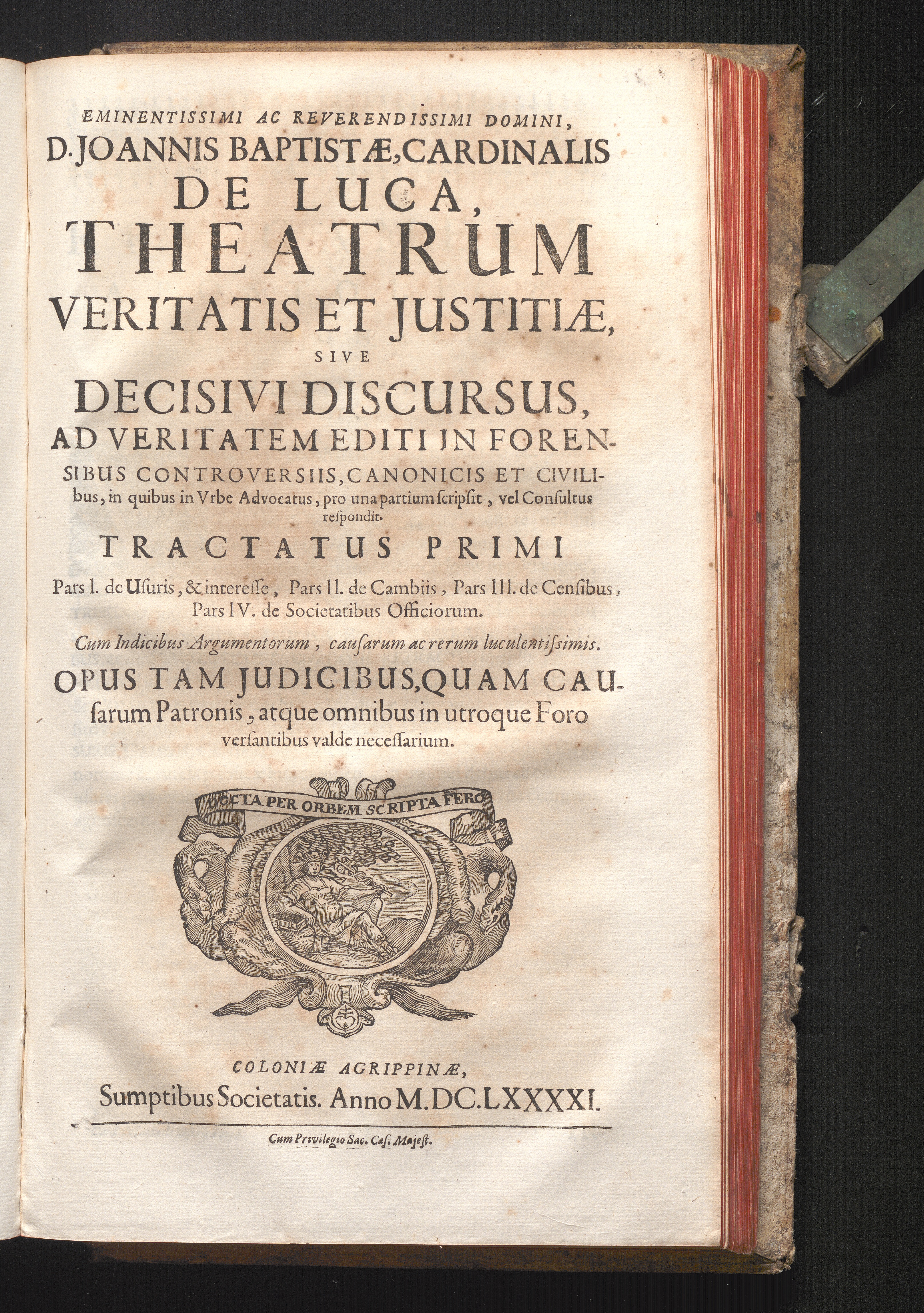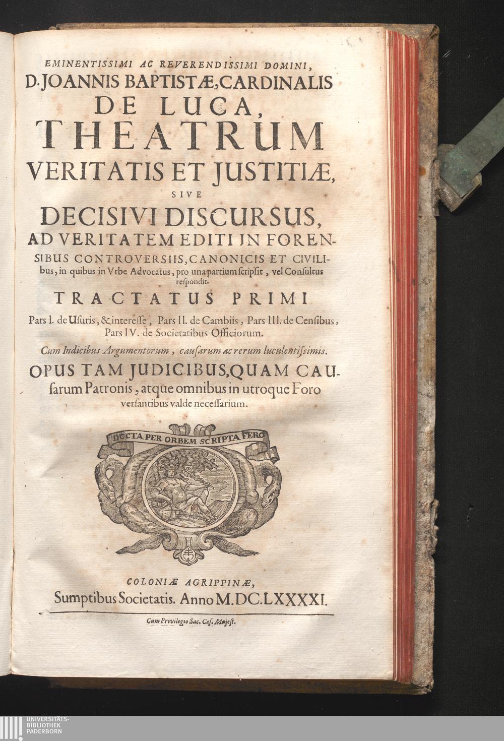 Tomus III. Tractatvs Qvarti (1691) Tractatus Primi Pars I. de Usuris, & interesse, Pars II. de Cambiis, Pars III. de Censibus, Pars IV. de Societatibus Officiorum