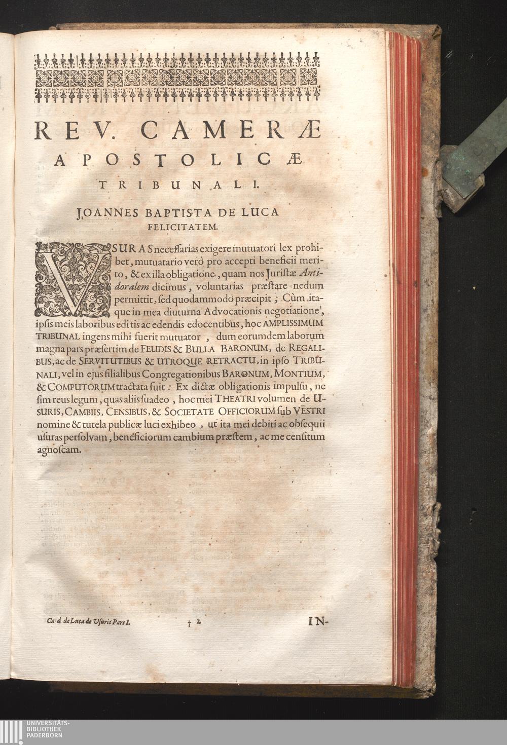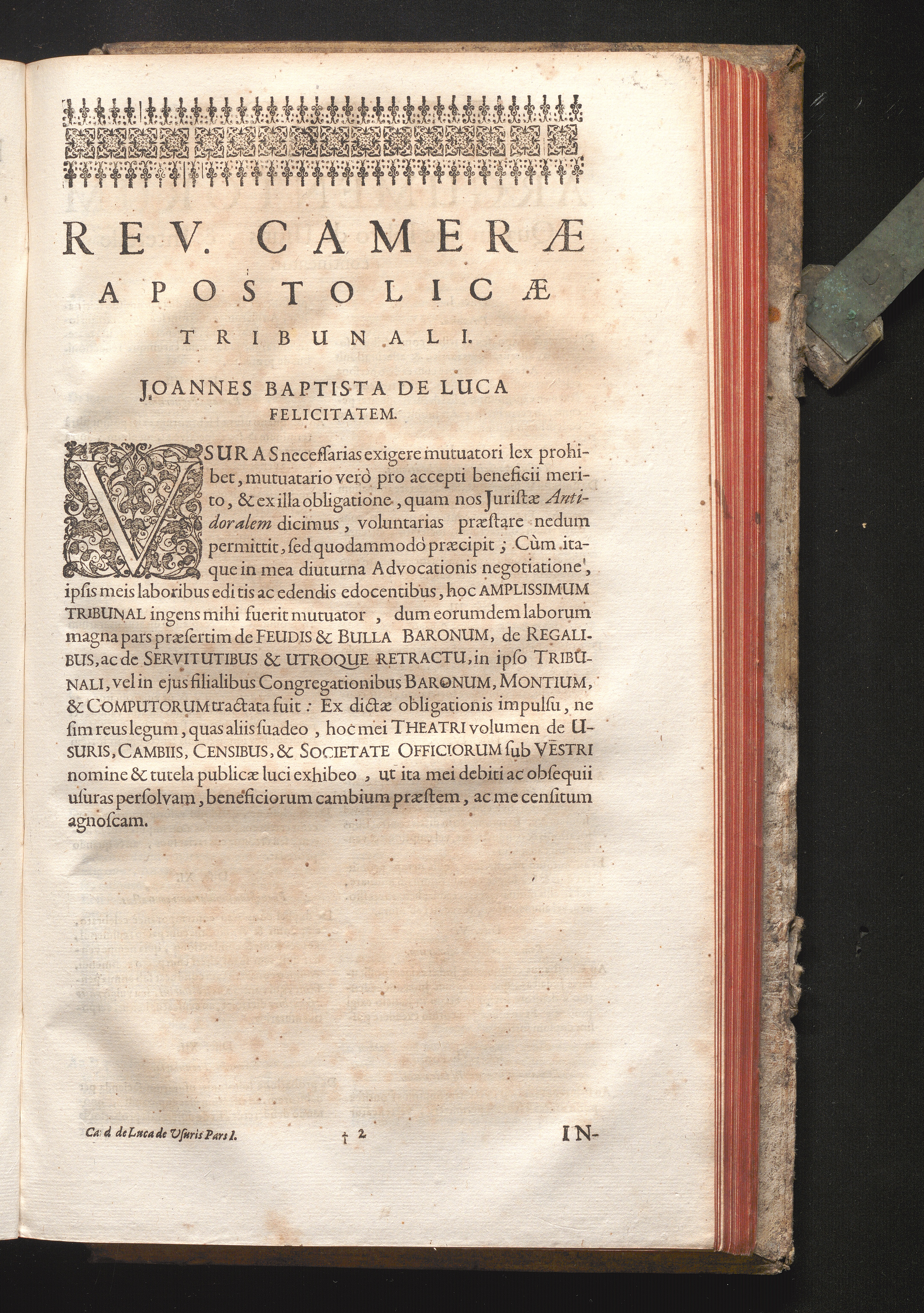 Rev. Cameræ Apostolicæ Tribunali. Joannes Baptista de Luca Felicitatem.