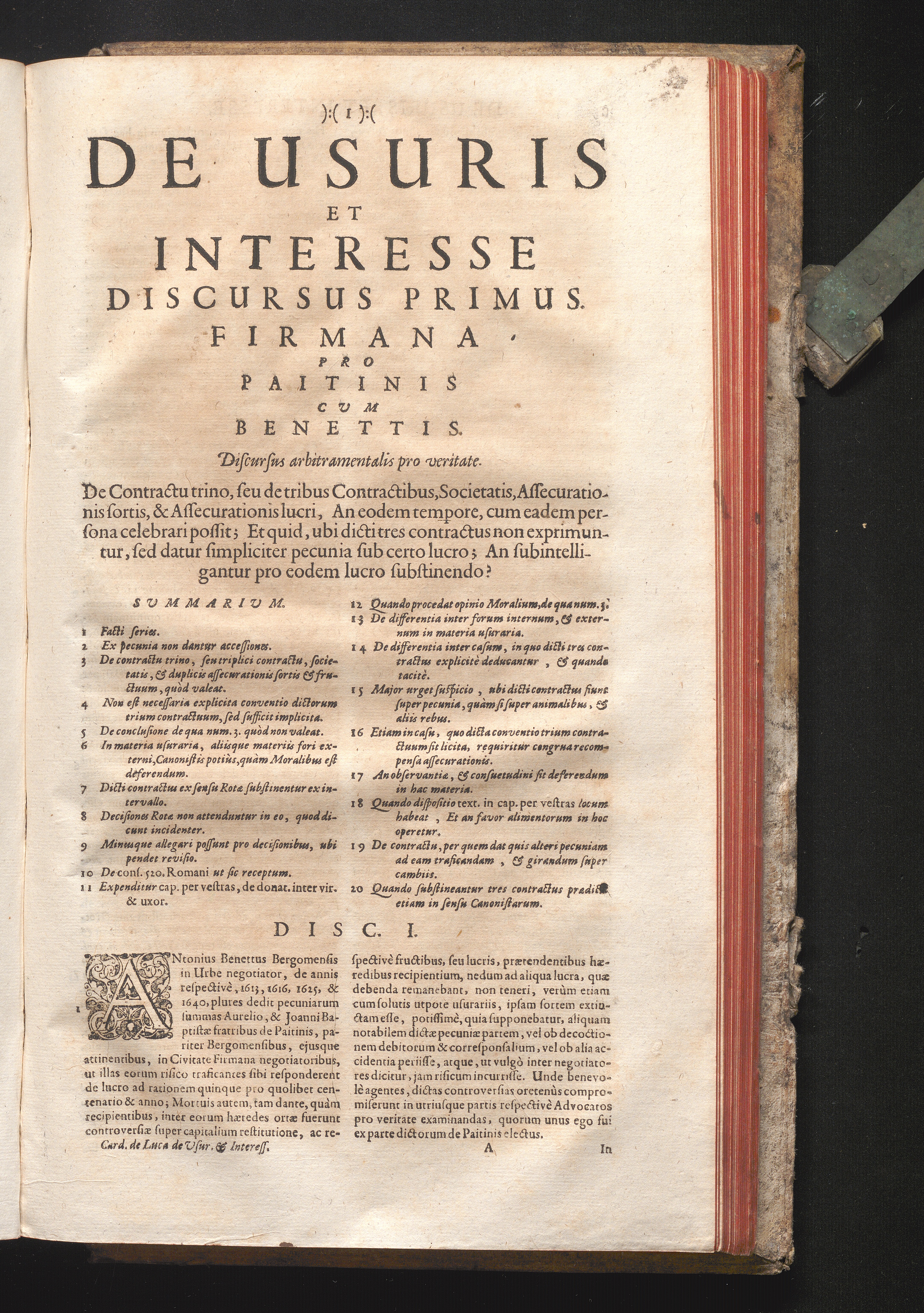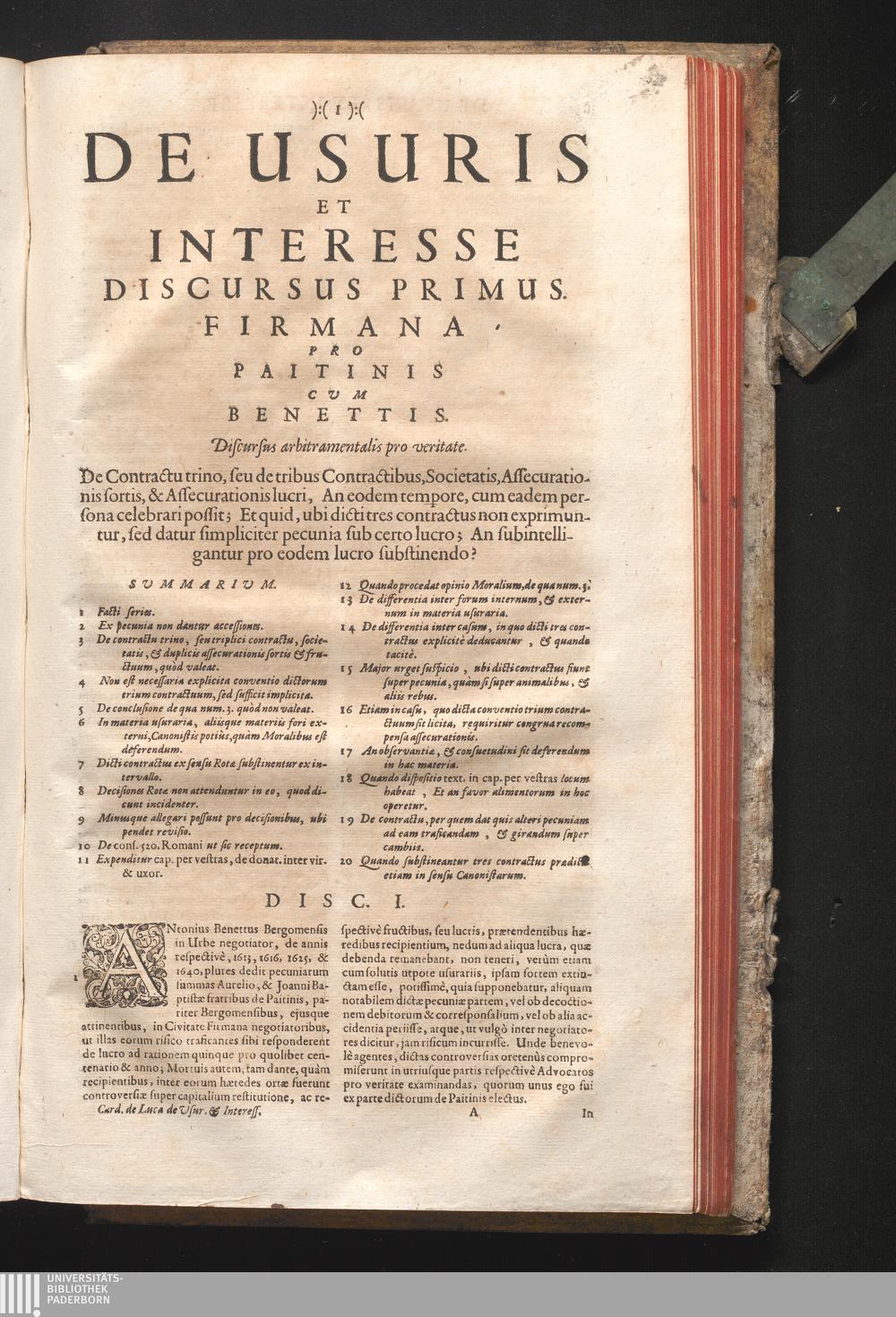 Disc. I. Firmana. De contractu trino, seu de tribus contractibus, societatis, assecurationis[...]