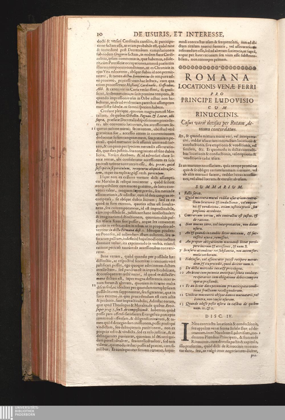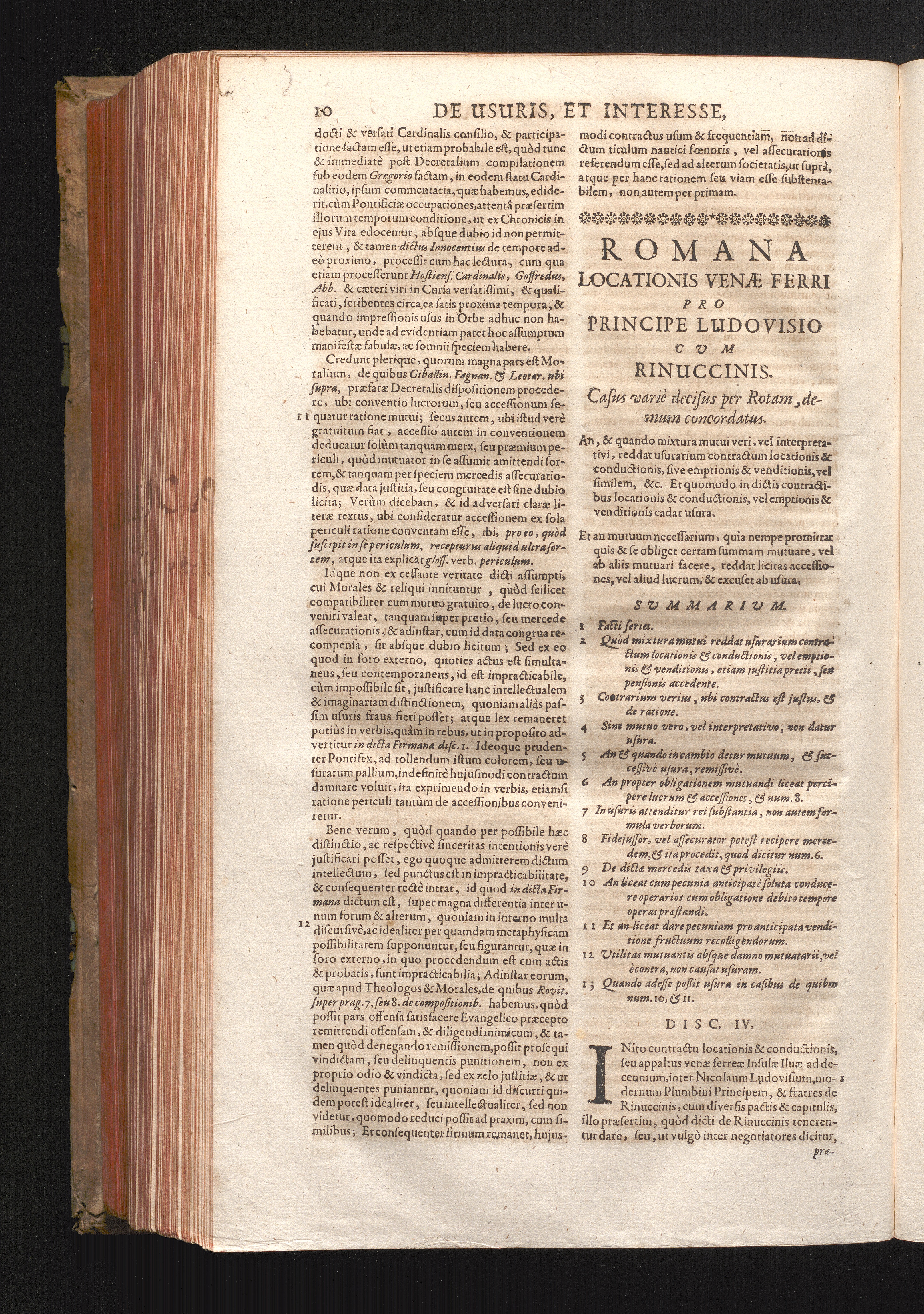 Disc. IV. Romana locationis Venæ ferri. An & quando mixtura mutui veri, vel interprætativi[...]