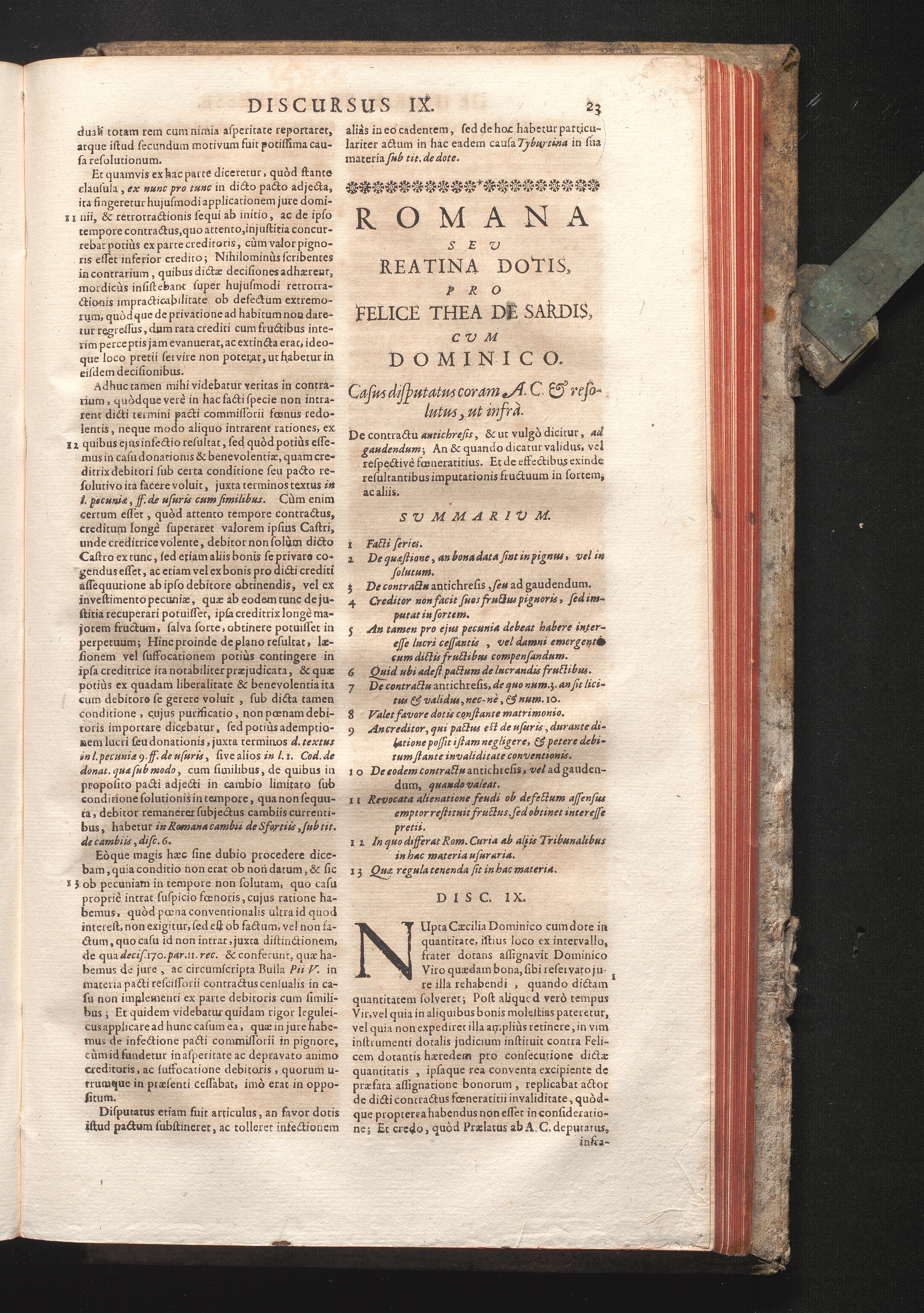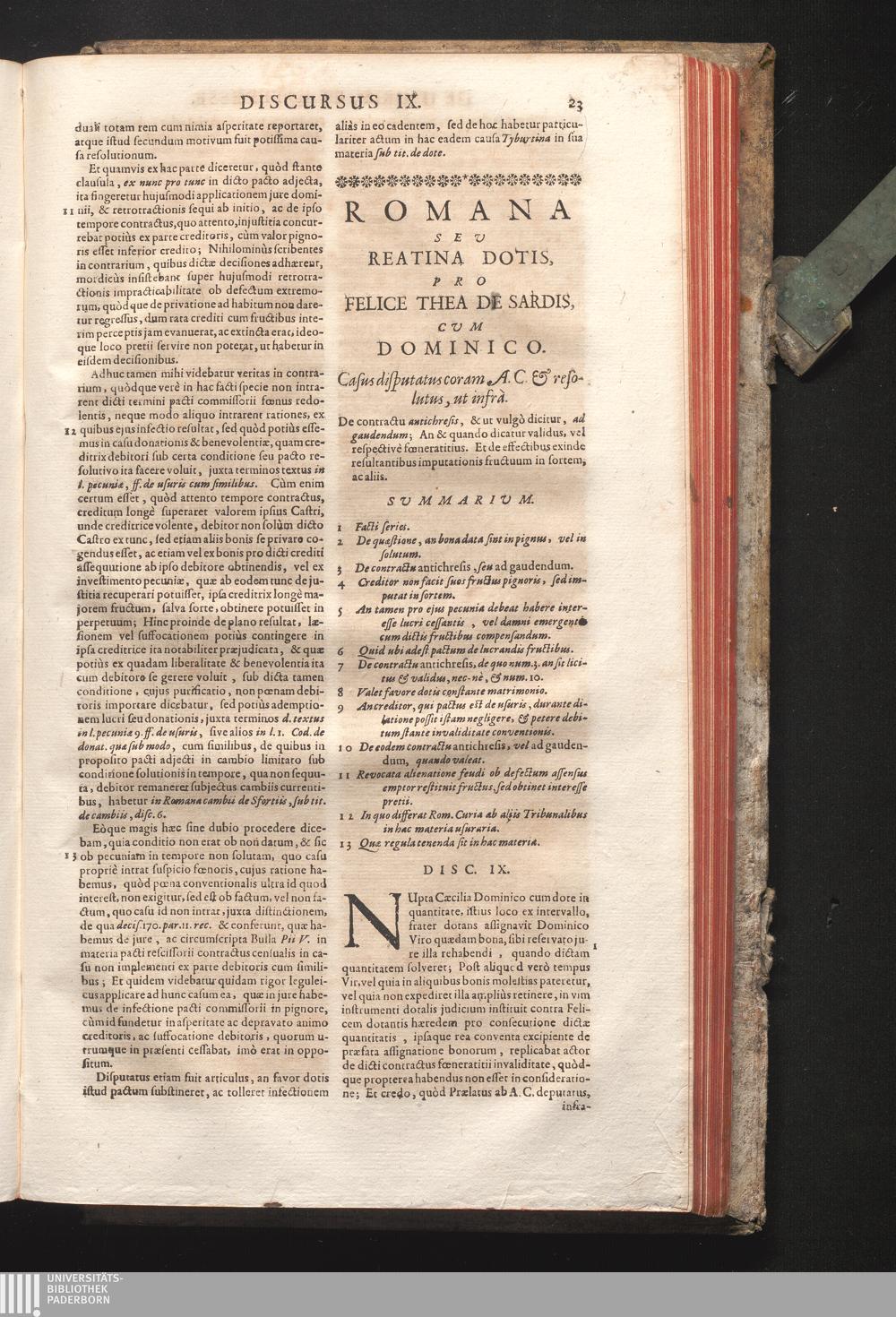 Disc. IX. Romana seu Reatina dotis. De contractu antichresis, & ut vulgò dicitur,[...]