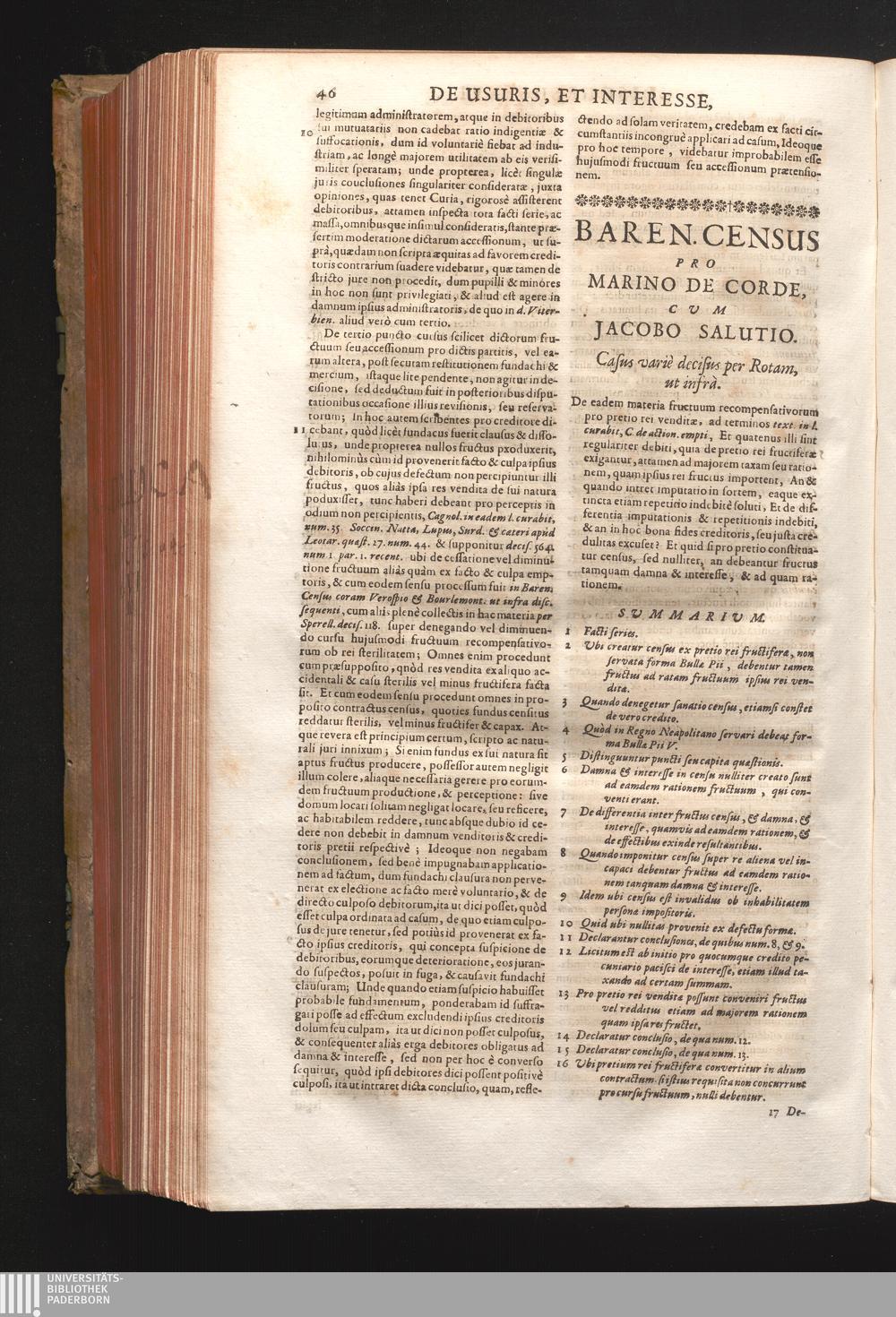 Disc. XVII. Baren. Census. De eadem materia fructuum recompensativorum pro pretio[...]