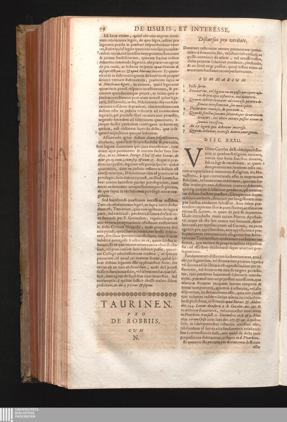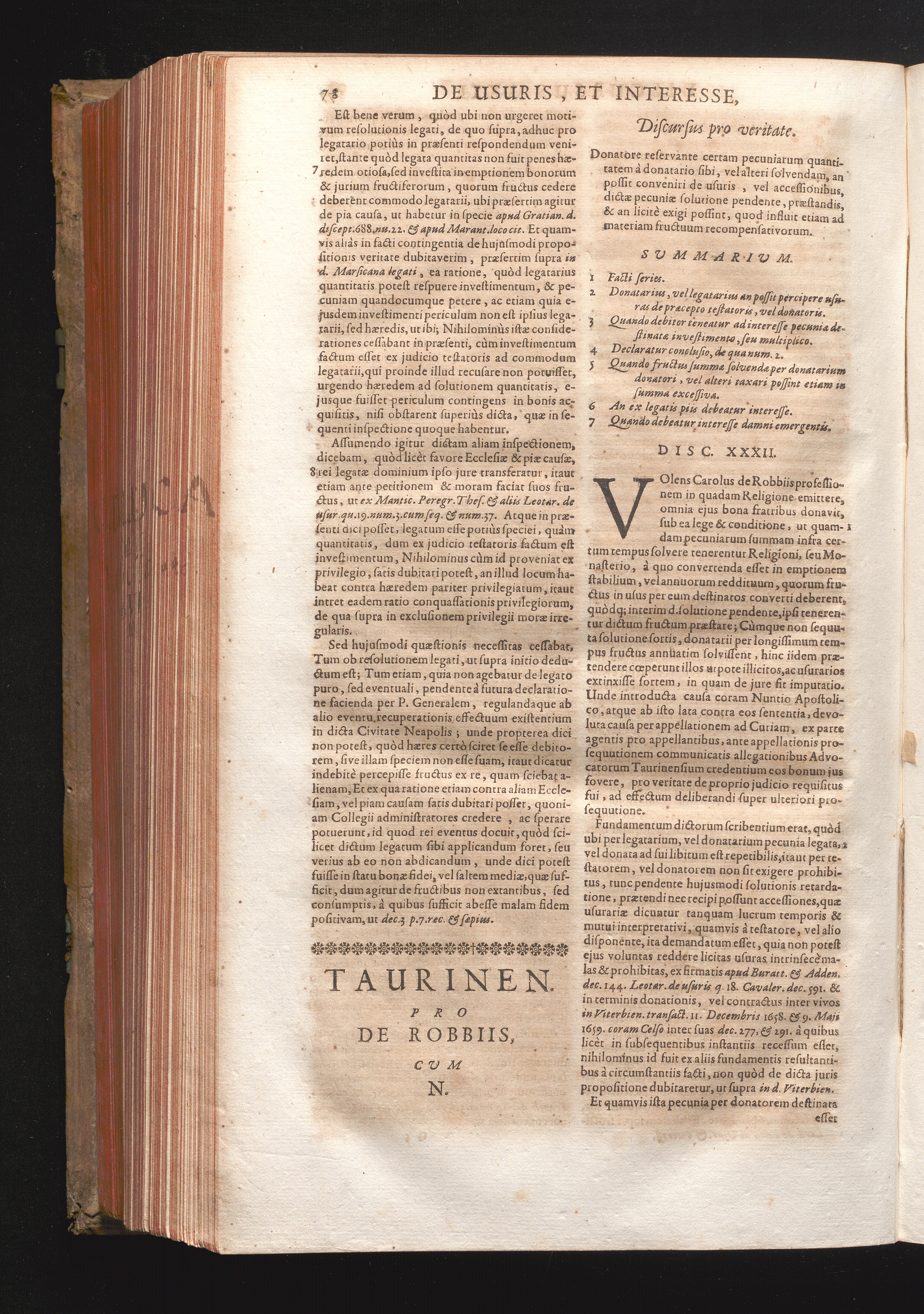 Disc. XXXII. Taurinen. Donatore reservante certam pecuniarum quantitatem à donatario[...]