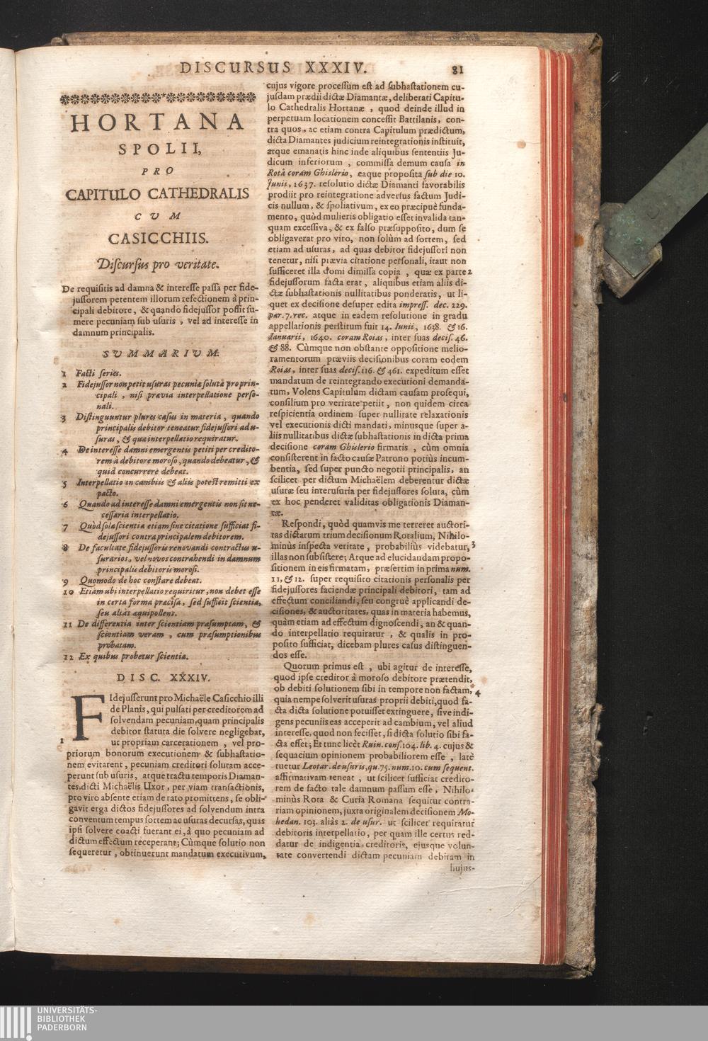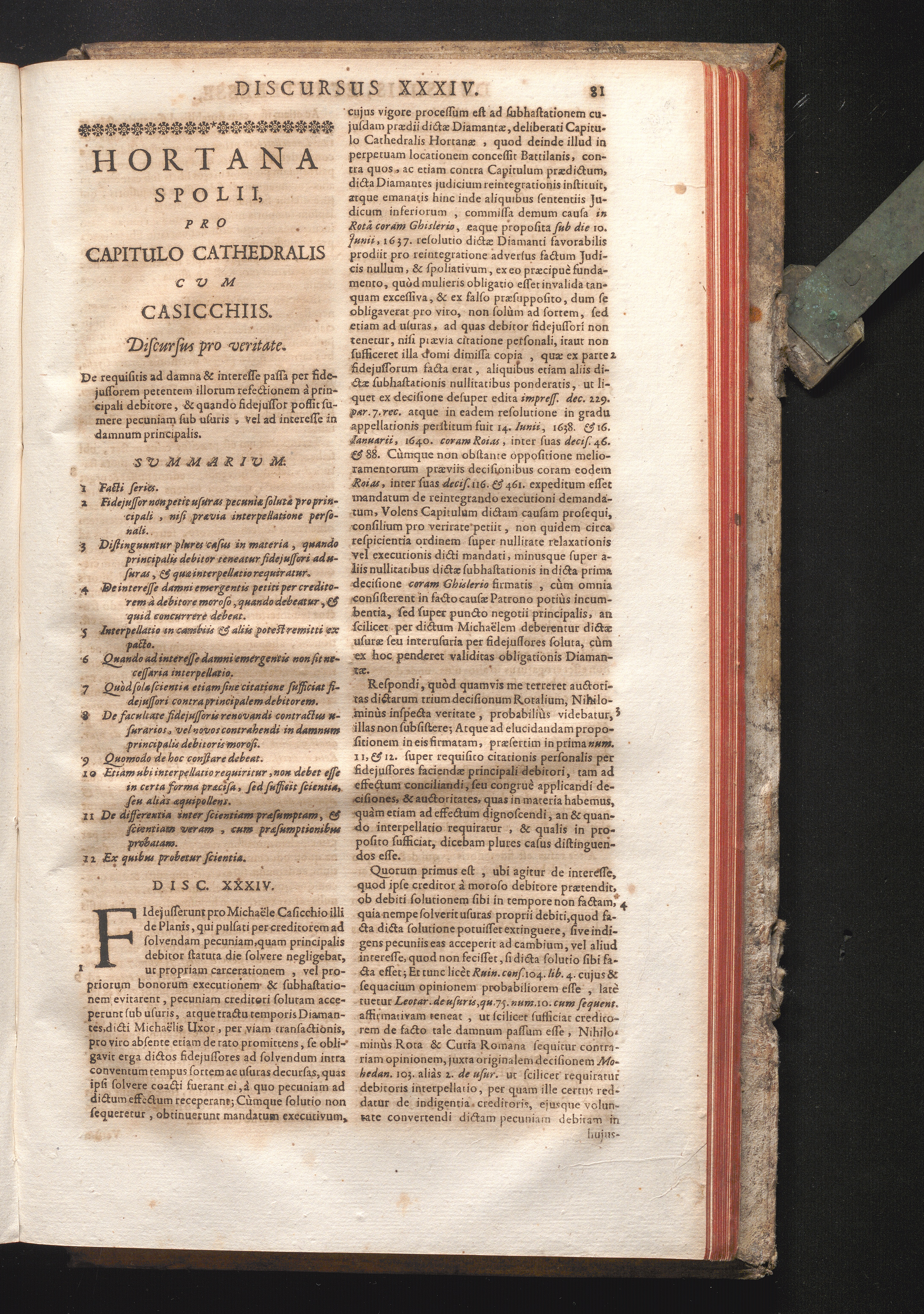 Disc. XXXIV. Hortana Spolii. De requisiti ad damna & interesse passa per fidejussorem[...]