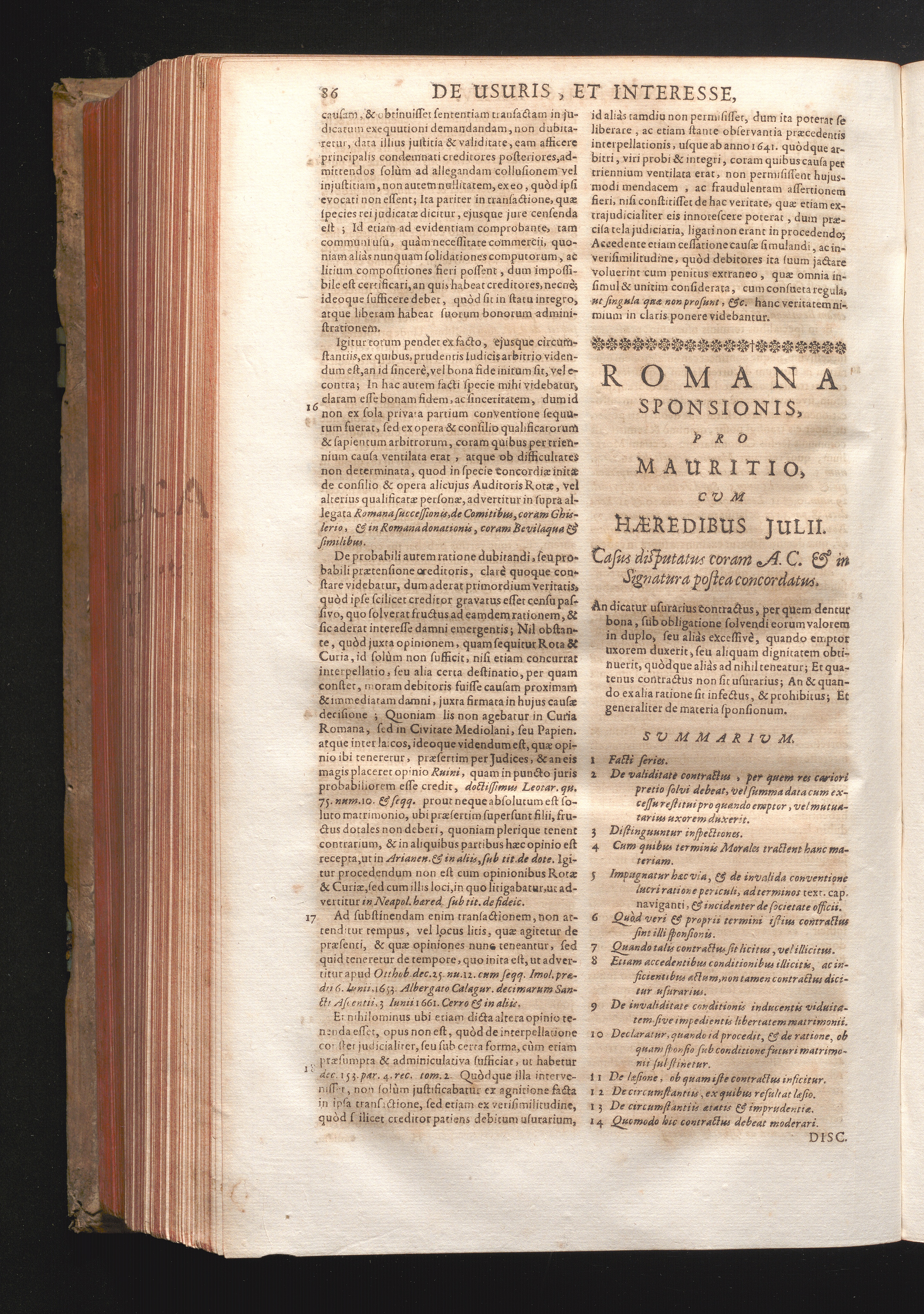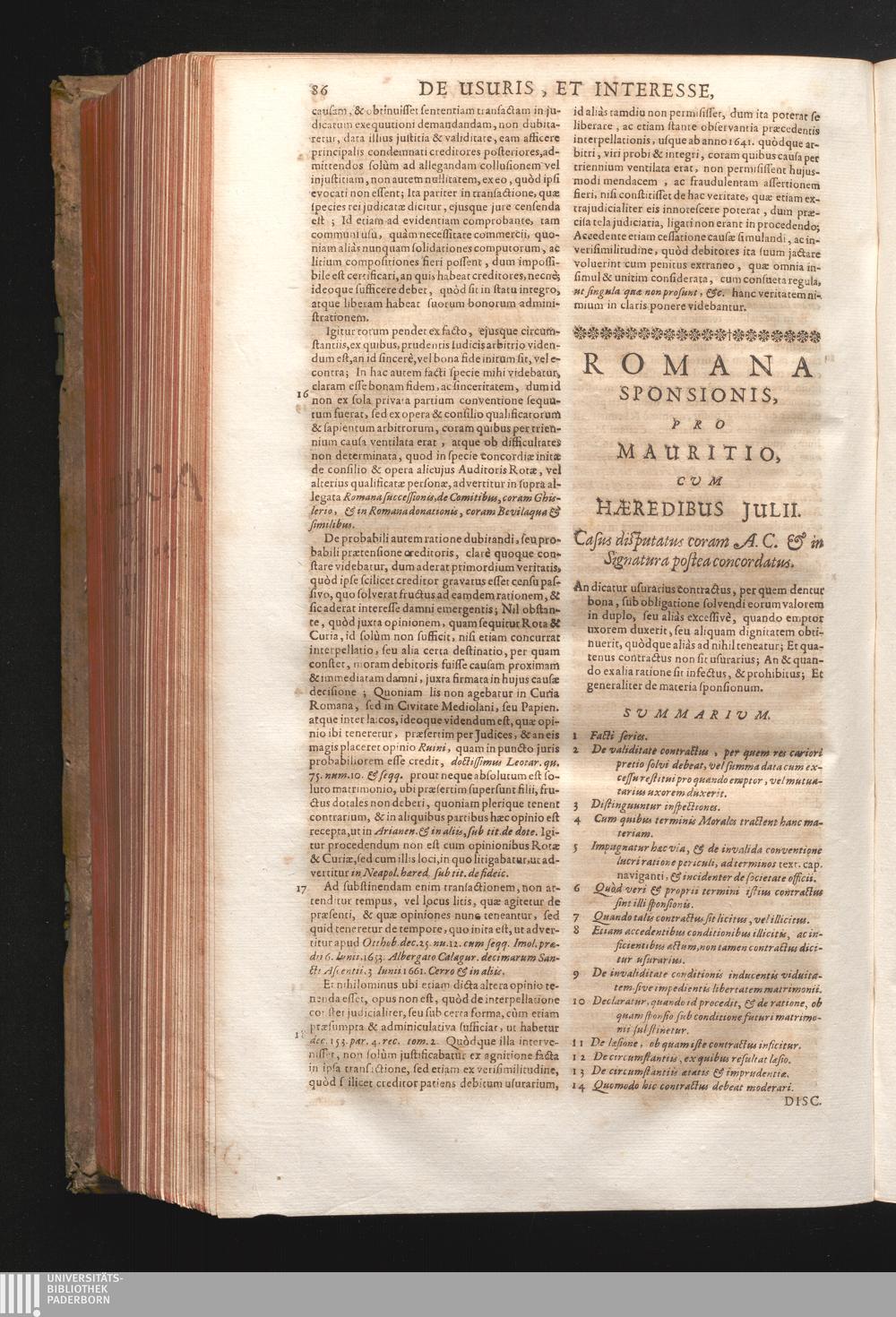 Disc. XXXVI. Romana Sponsionis. An dicatur usurarius contractus, per quem dentur[...]