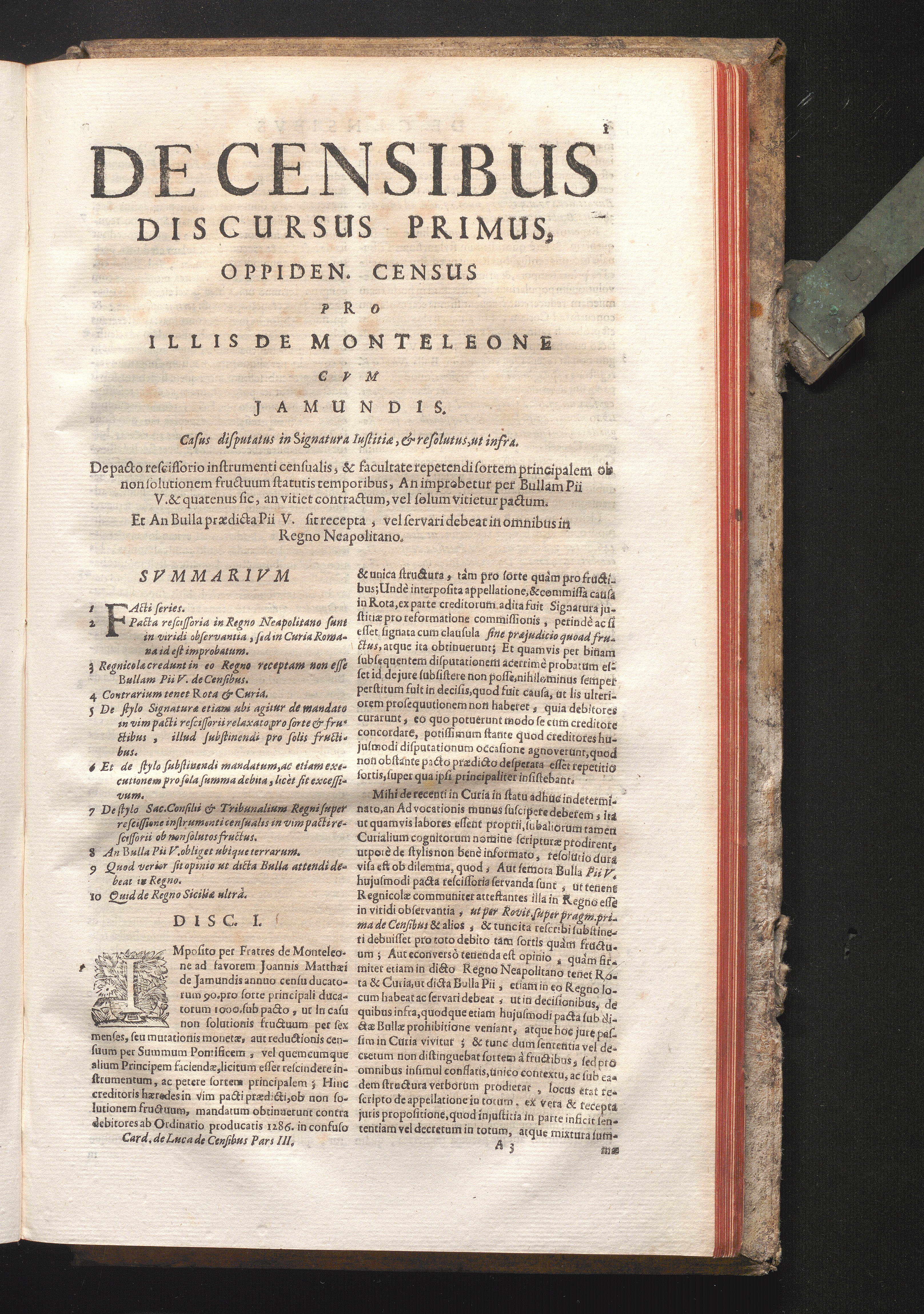 Disc. I. Oppiden. Census. De pacto rescissorio instrumenti censualis, & facultate[...]