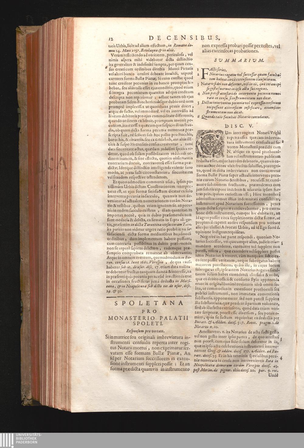 Disc. V. Spoletana. Si in matrice seù originali imbreviatura instrumenti censualis[...]