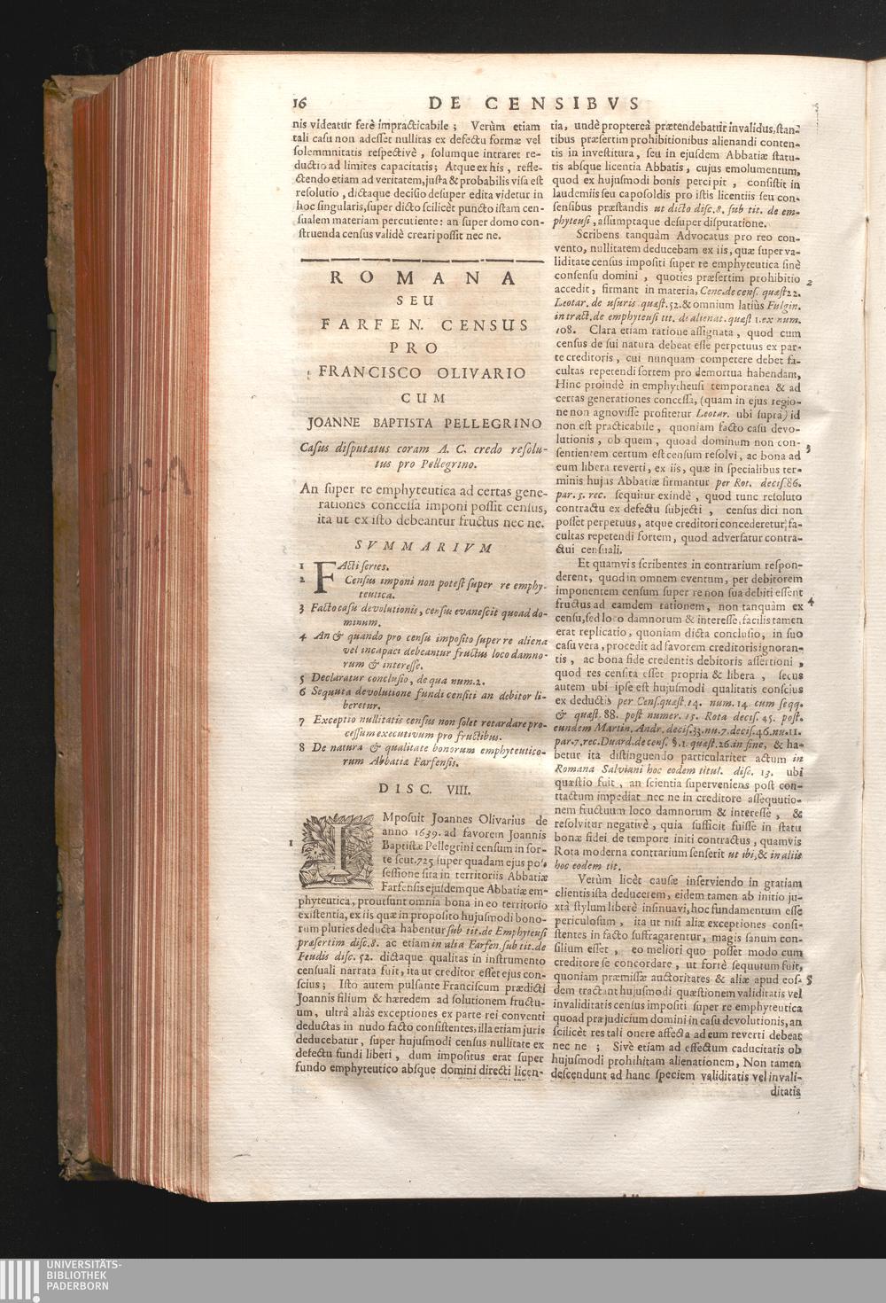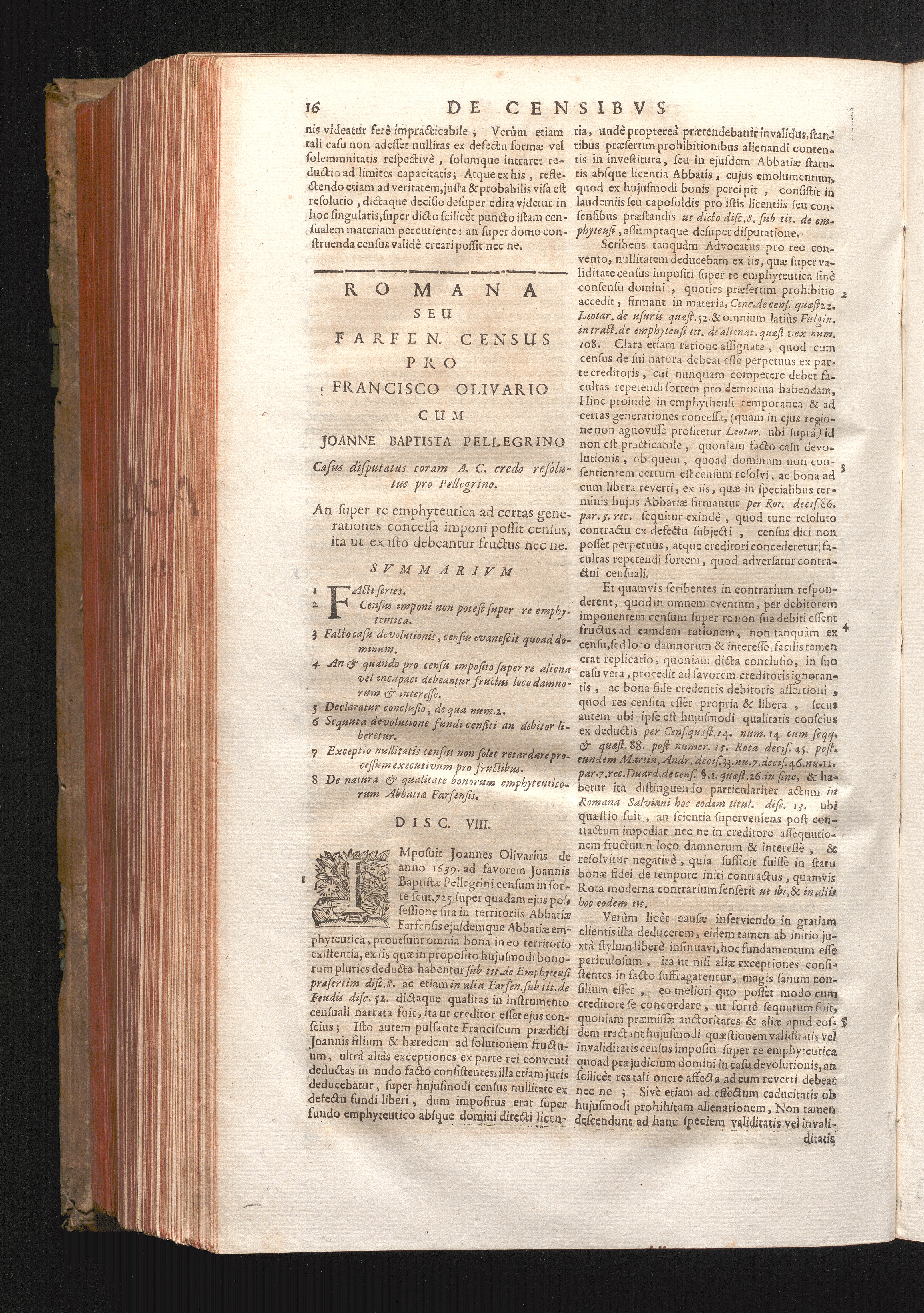 Disc. VIII. Romana seù Farfen. Census. An super re emphyteutica ad certas generationes[...]