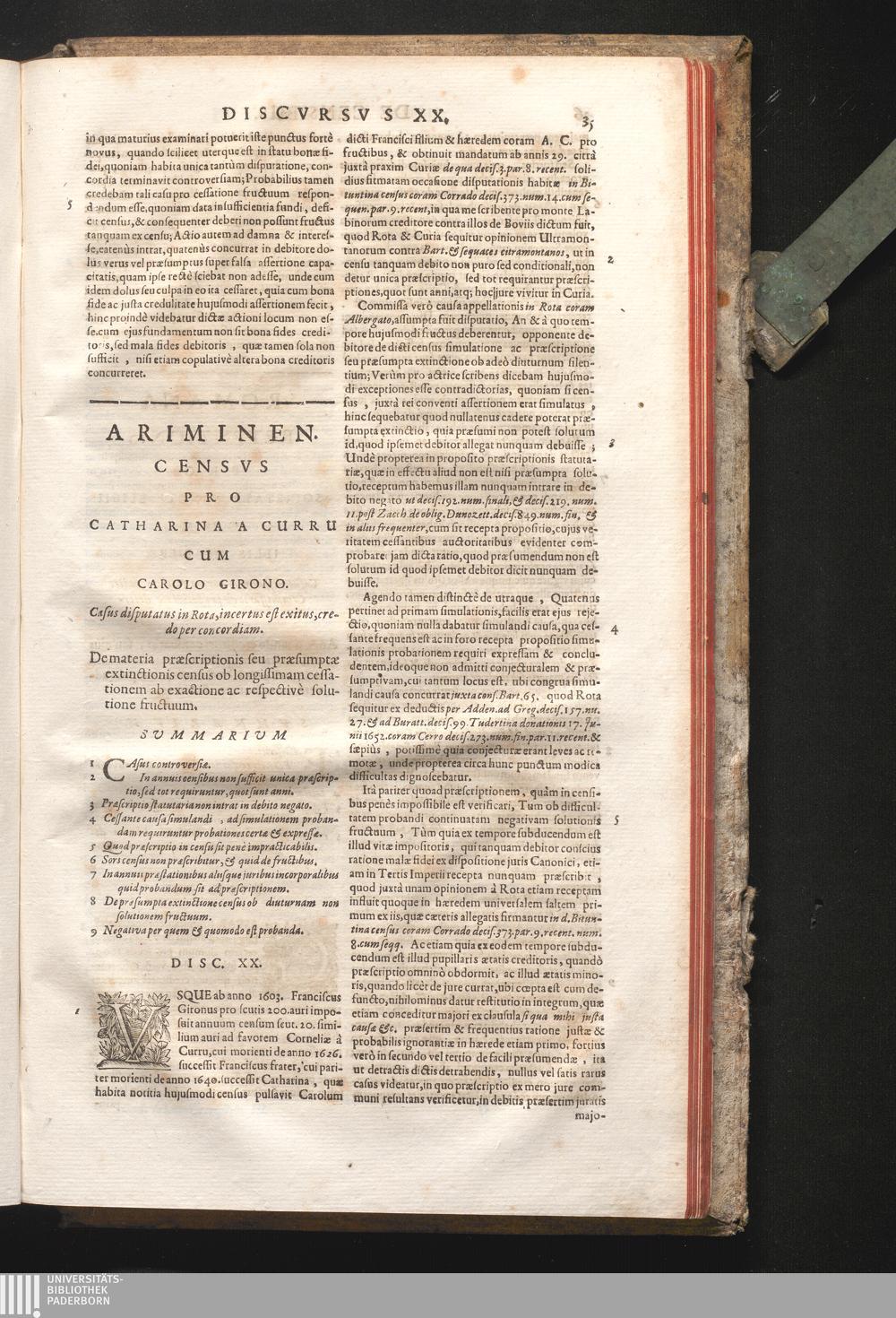 Disc. XX. Ariminen. Census. De materia præscriptionis, seù præsumptæ extinctionis[...]