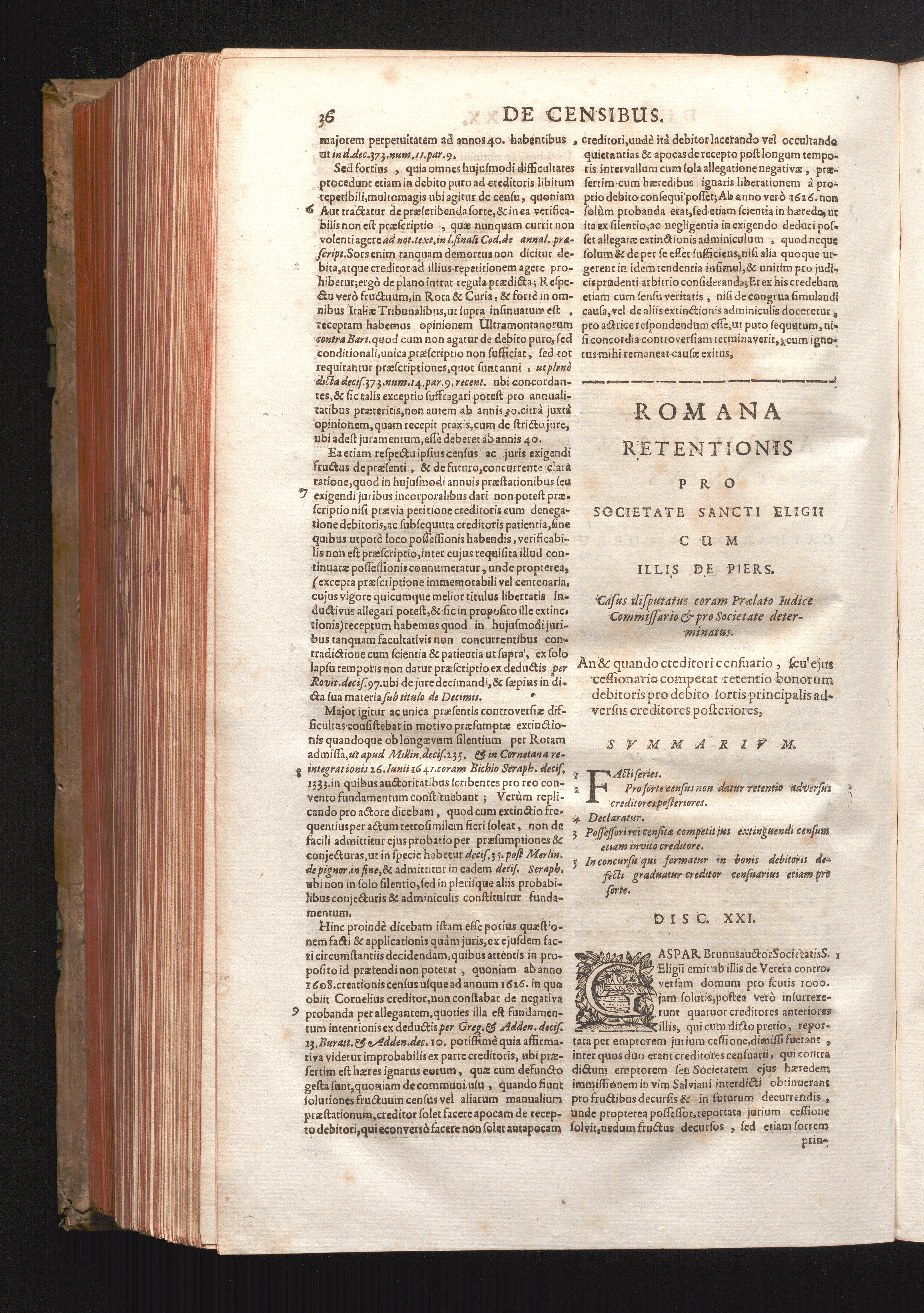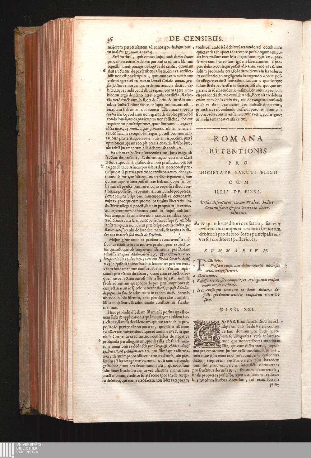 Disc. XXI. Romana retentonis. An & quando creditori censuario, seù ejus cessionario[...]