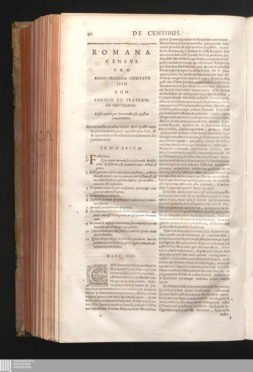 Disc. XXIV. Romana Census. An extinctio census validè fieri possit cum eo procuratore,[...]