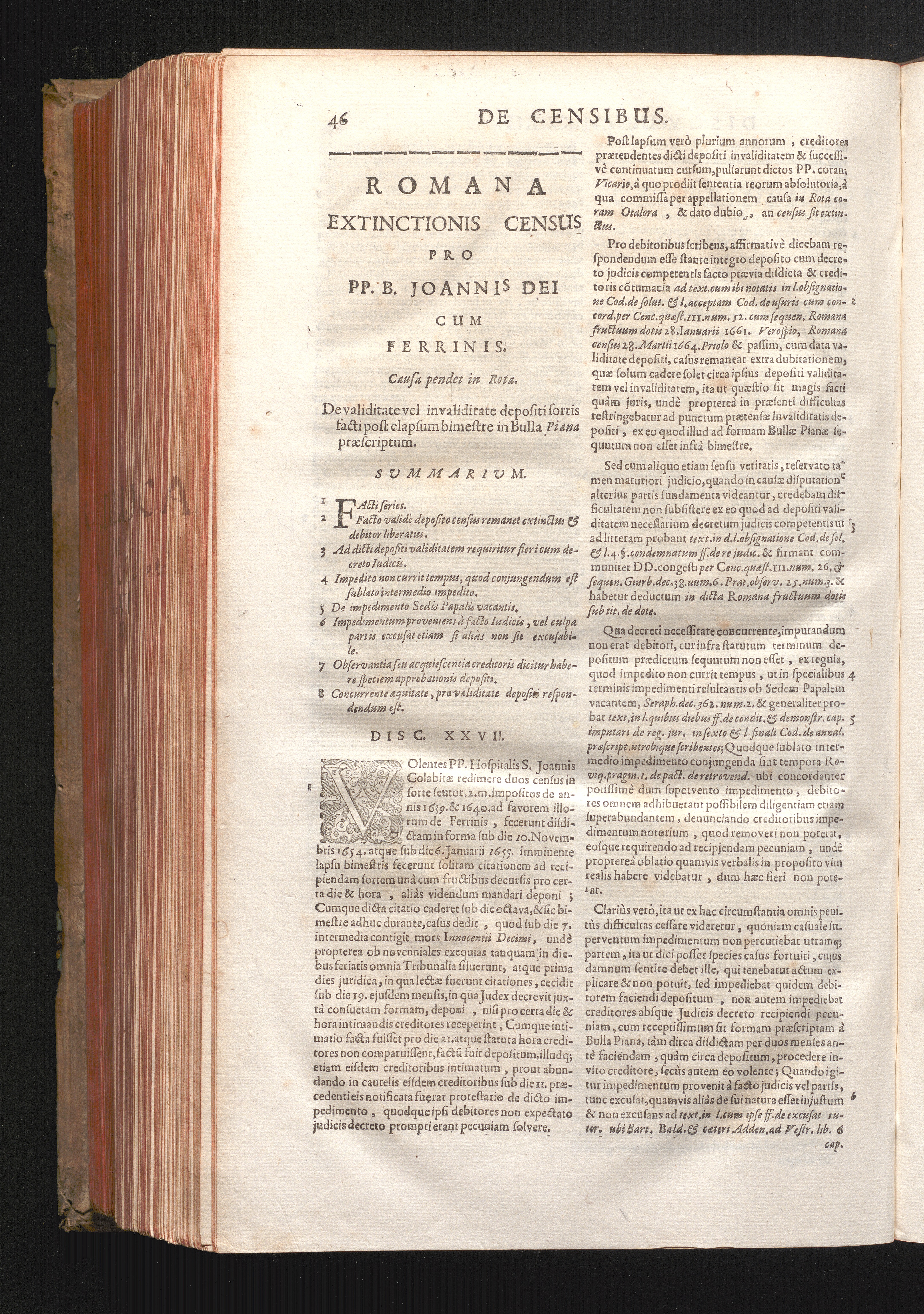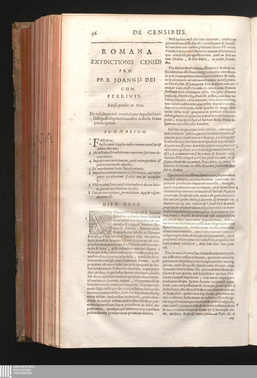 Disc. XXVII. Romana extinctionis Census. De validitate vel invaliditate depositi[...]