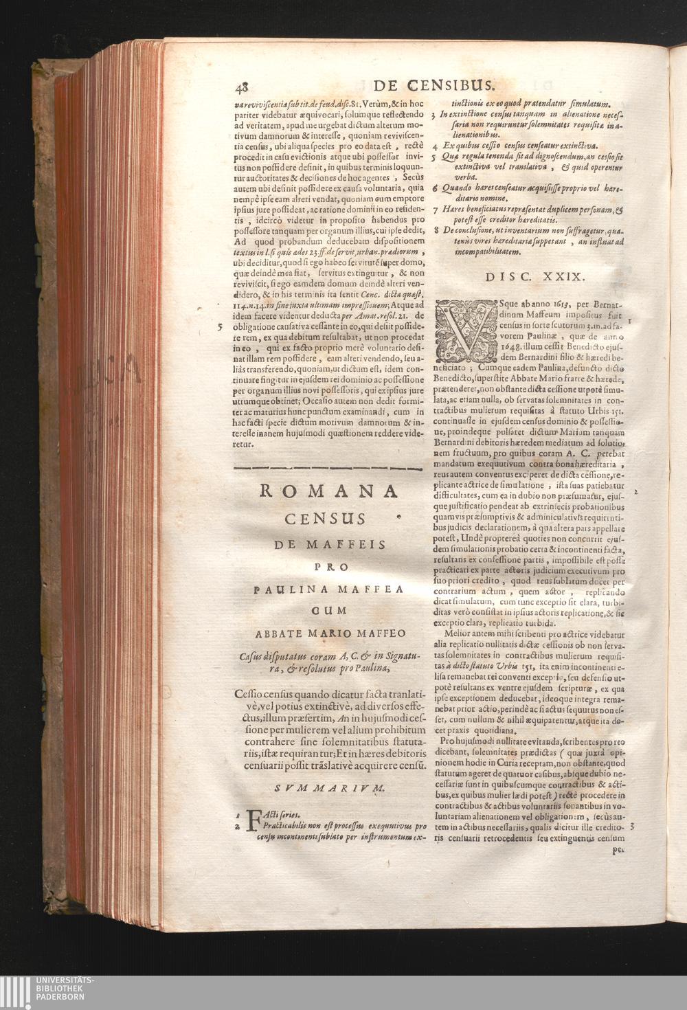 Disc. XXIX. Romana Census de Maffeis. Cessio census quando dicatur facta translativè[...]